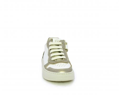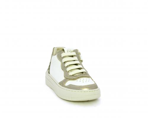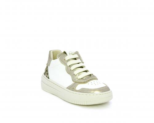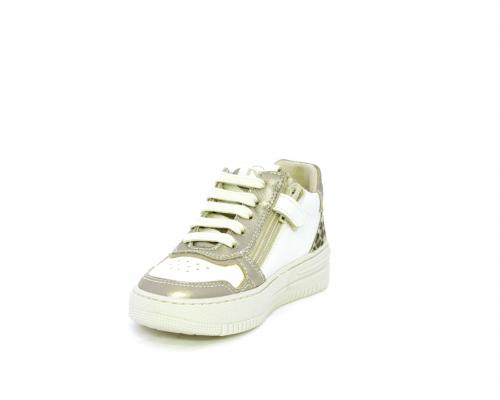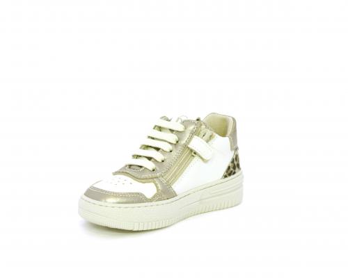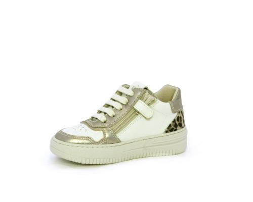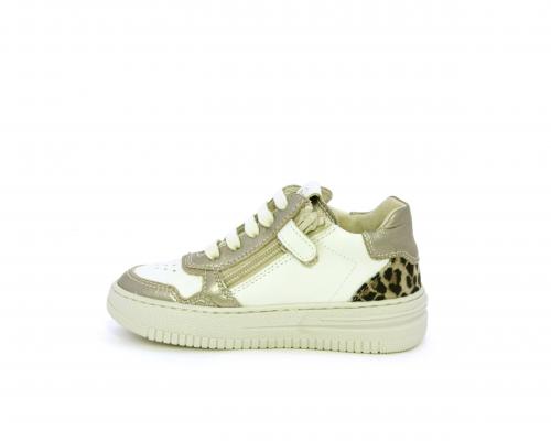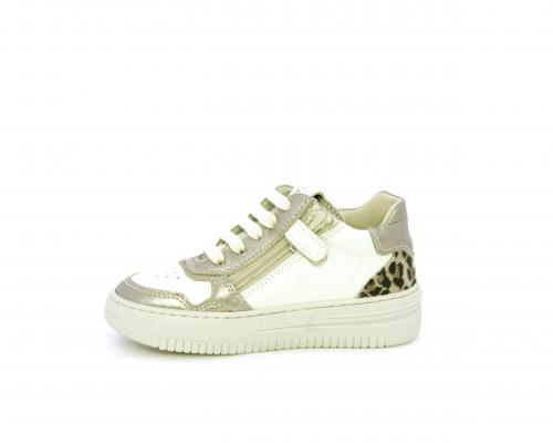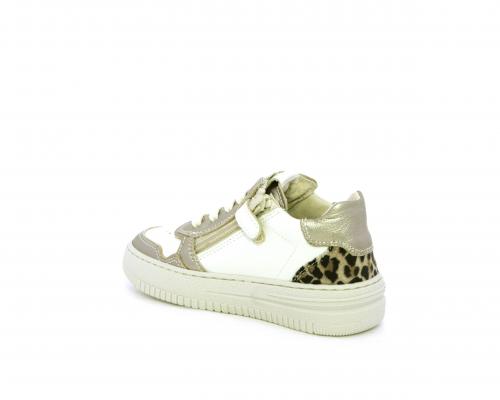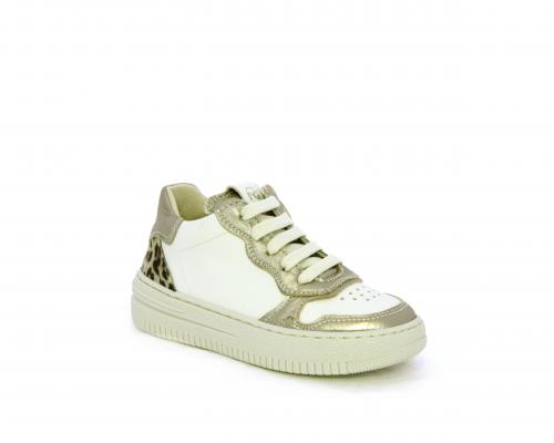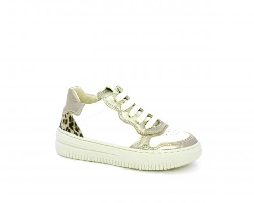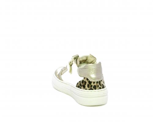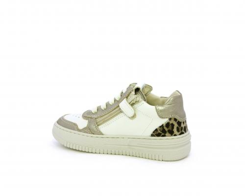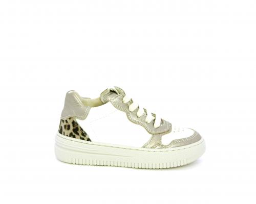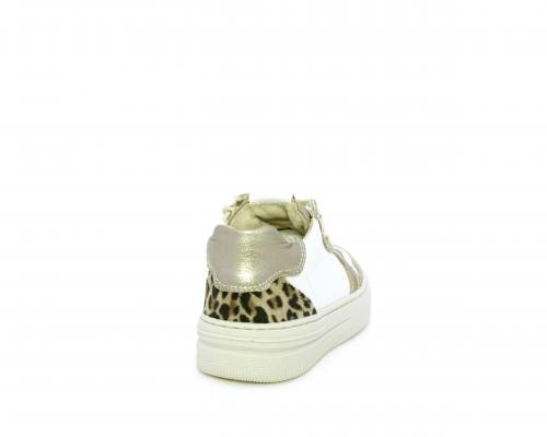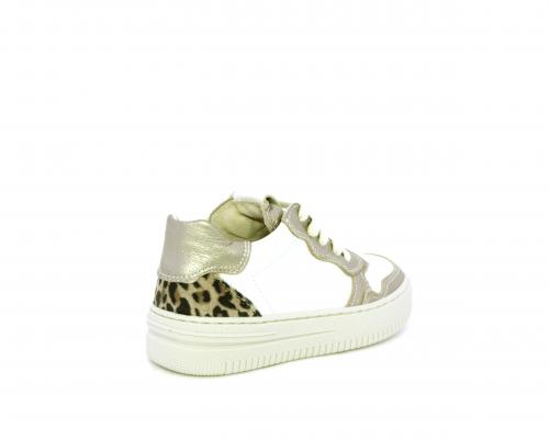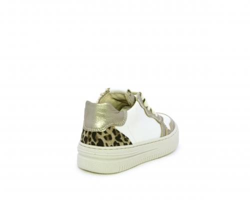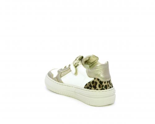 Sneakers con lacci e chiusura laterale per facilitare la calzata, tomaia in pelle con inserto in tessuto maculato al tallone, sottopiede e fodera interna in pelle, fusbet estraibile.