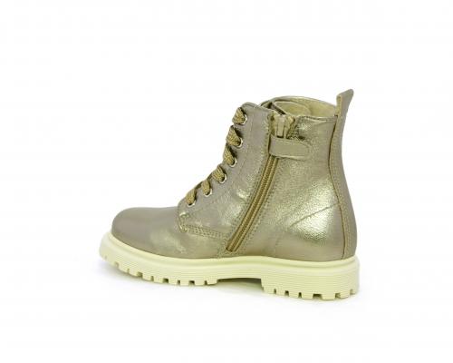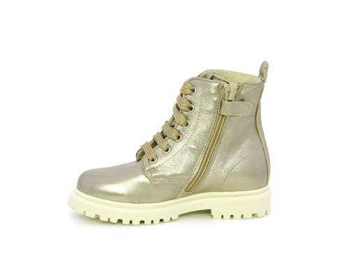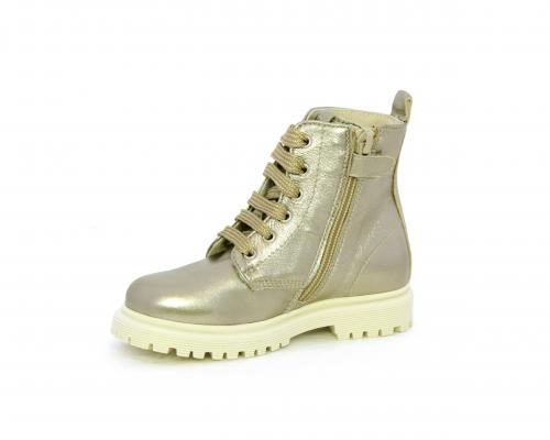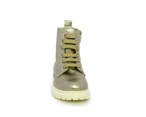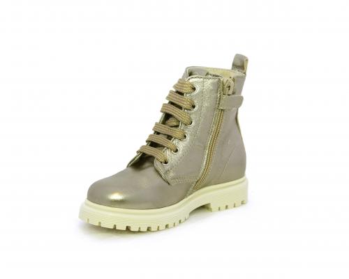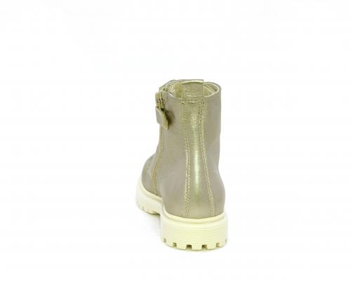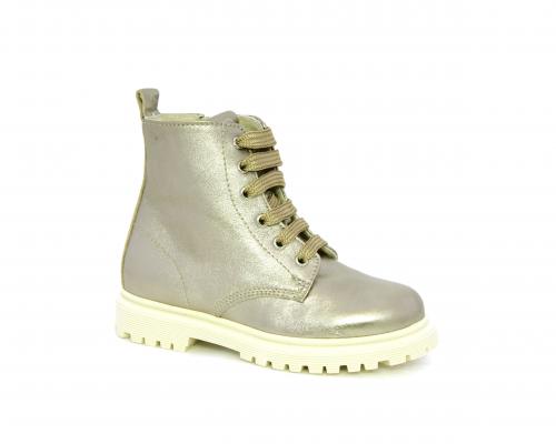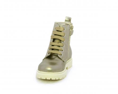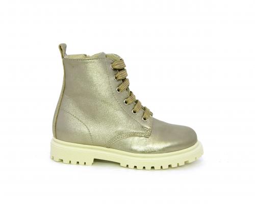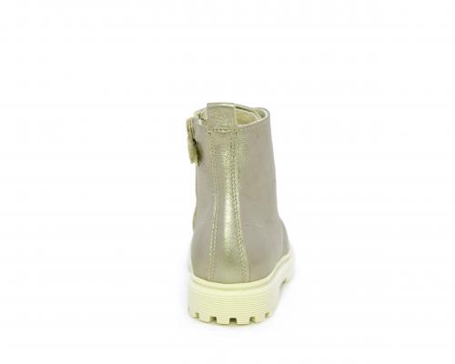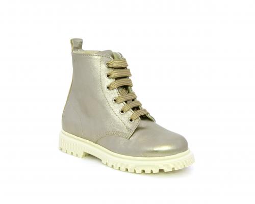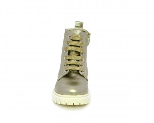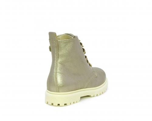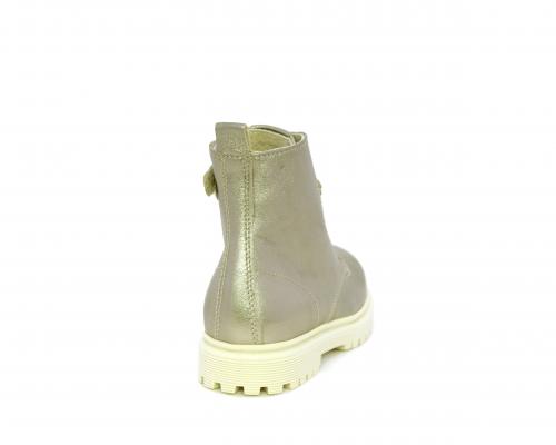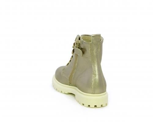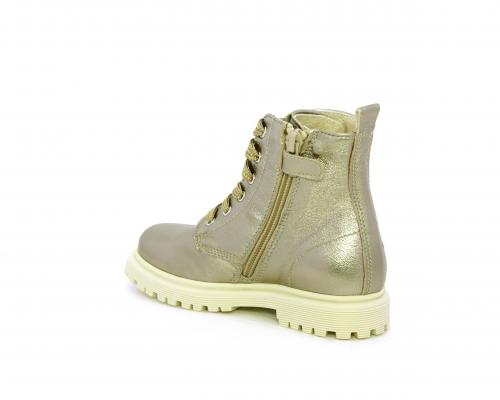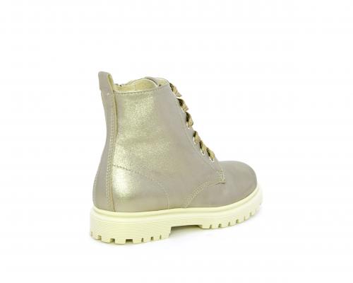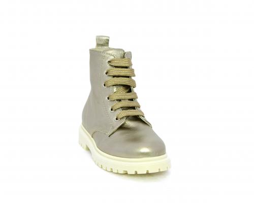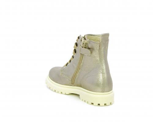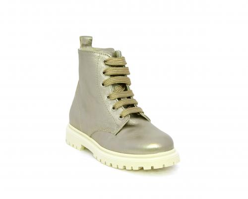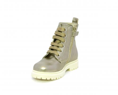 Anfibio con lacci e chiusura laterale, tomaia in pelle satinata, sottopiede e fodera interna in pelle, fusbet anatomico.