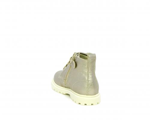 Anfibio con lacci e chiusura laterale, tomaia in pelle satinata, sottopiede e fodera interna in pelle, fusbet flessibile ed estraibile.