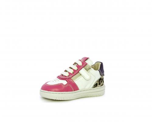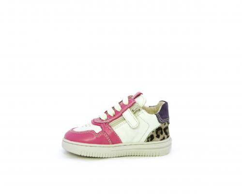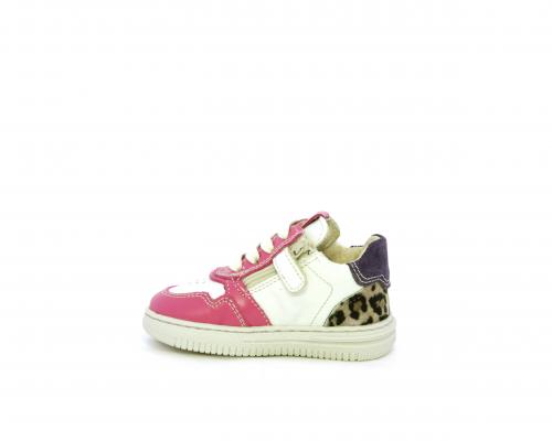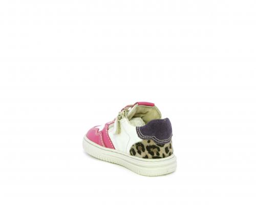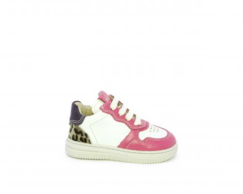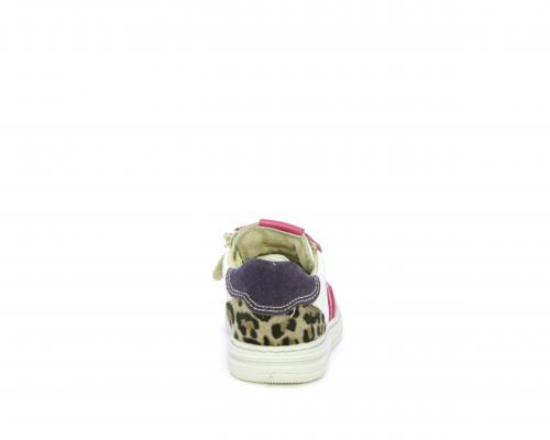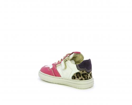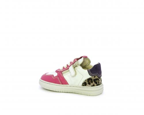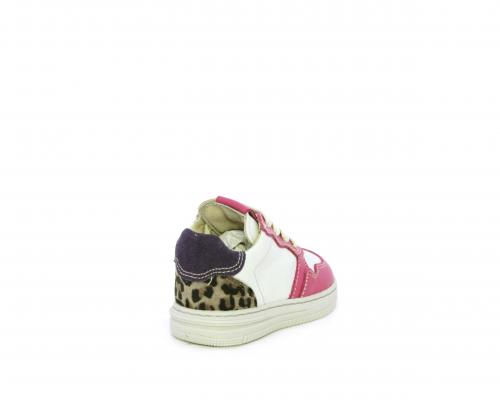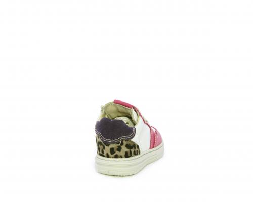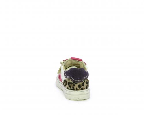 Sneakers con lacci e chiusura laterale, tomaia in pelle con inserto maculato dietro al tallone, sottopiede e fodera interna in pelle, fusbet estraibile.