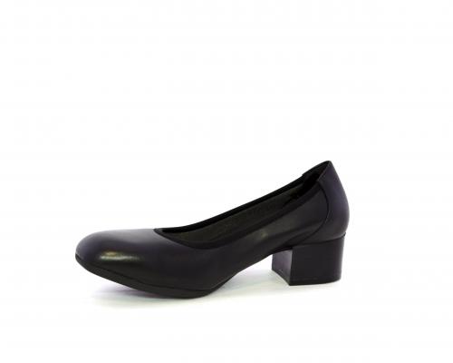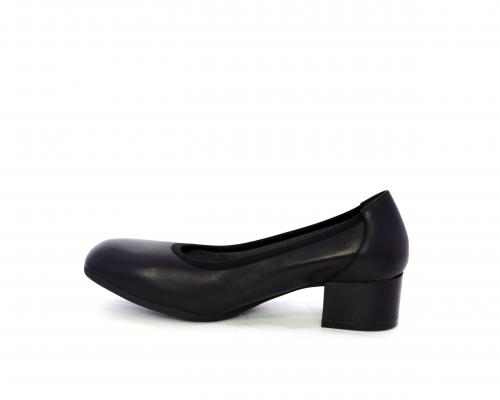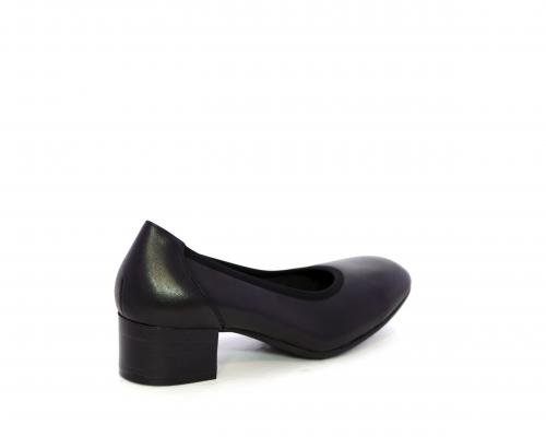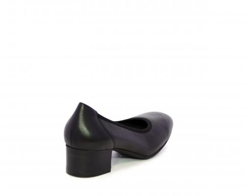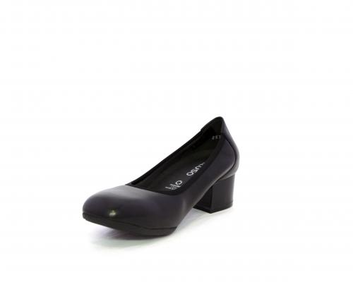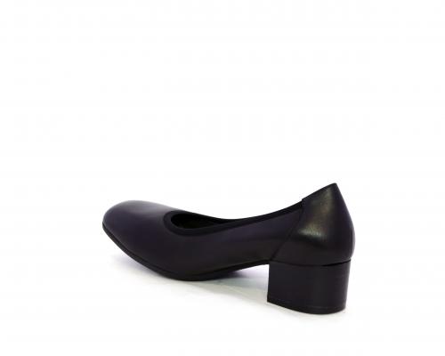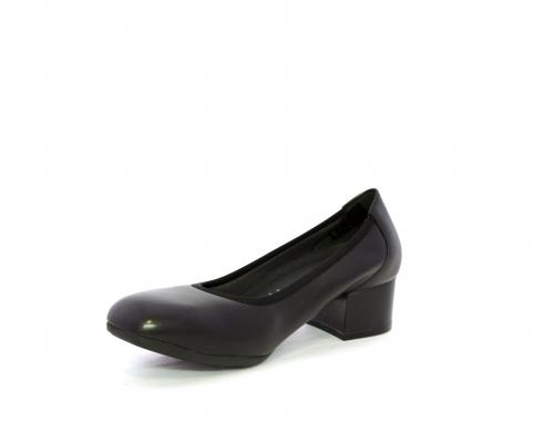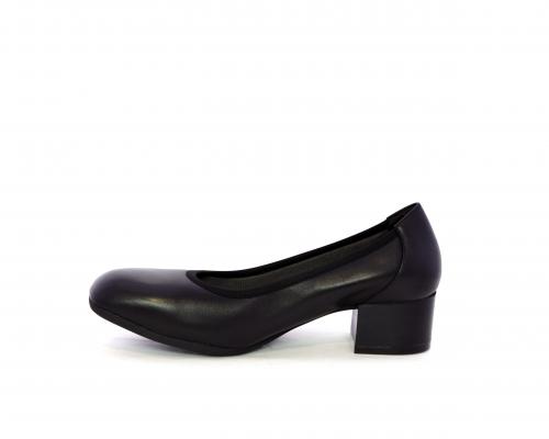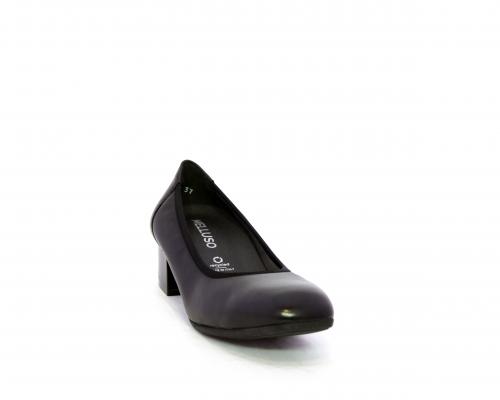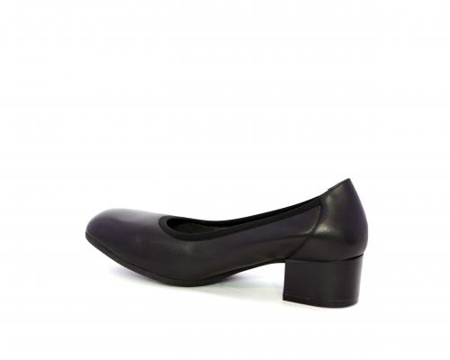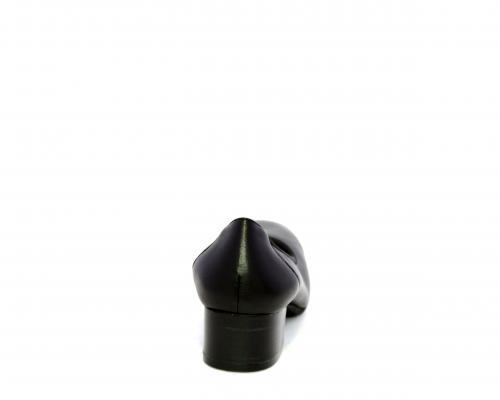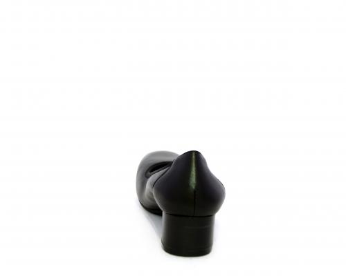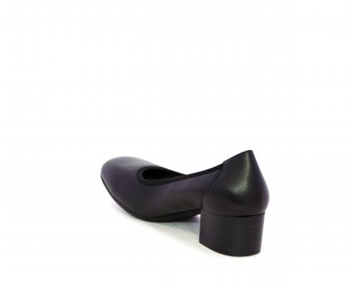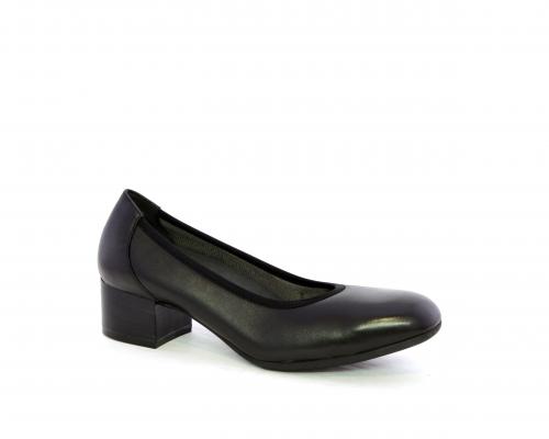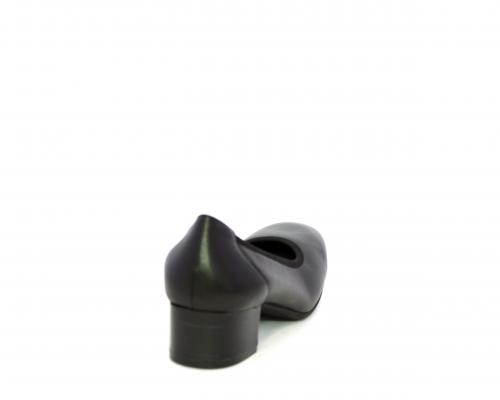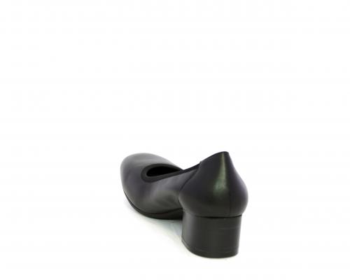 Decollettè con tacco largo, tomaia in pelle con elastico di rifinitura, sottopiede in pelle, fodera interna in tessuto, fusbet anatomico estraibile.