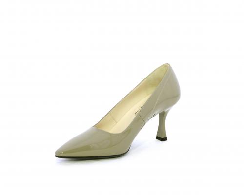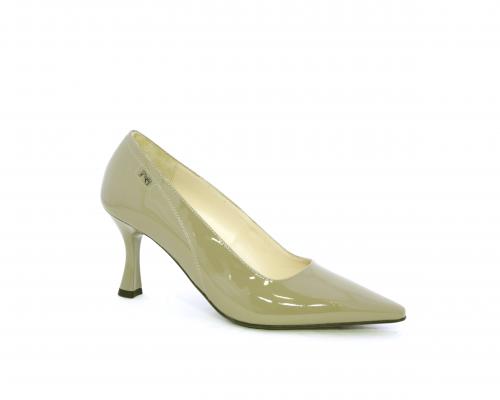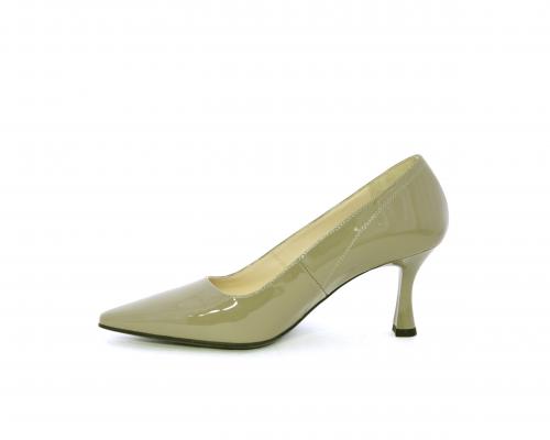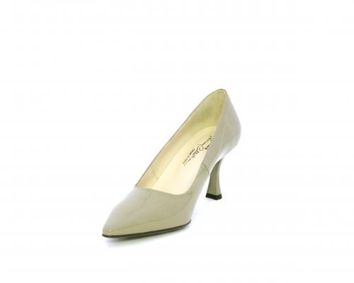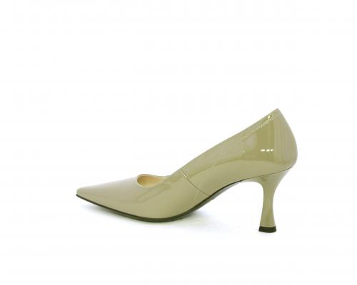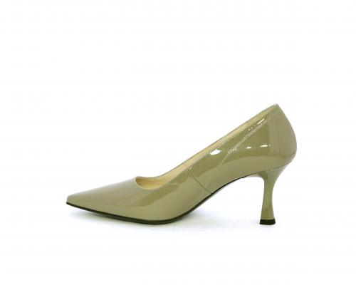 Decollettè con fondo in gomma e tacco a rocchetto in vernice, tomaia in vernice, sottopiede e fodera interna in pelle, fusbet anatomico.