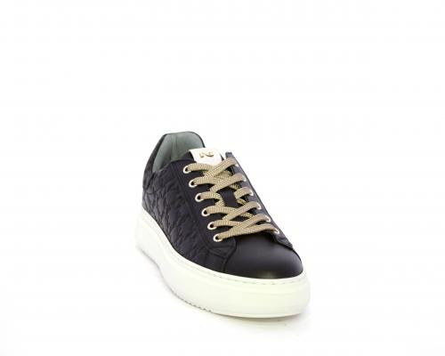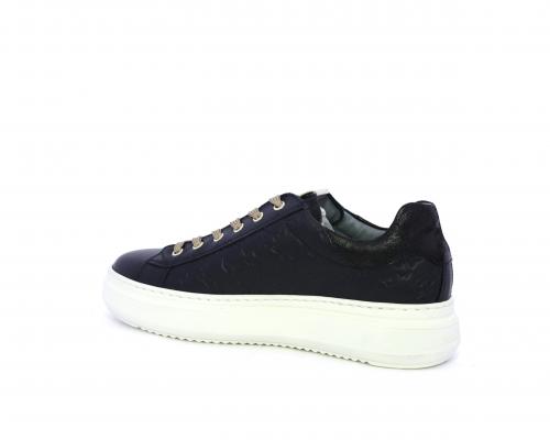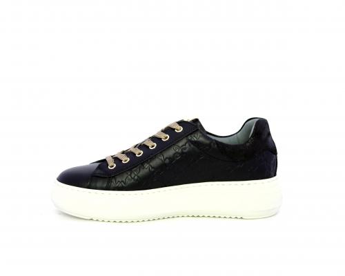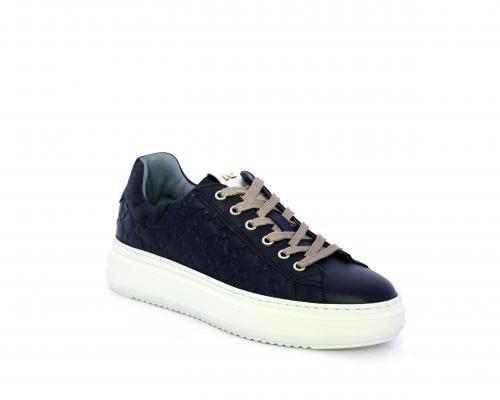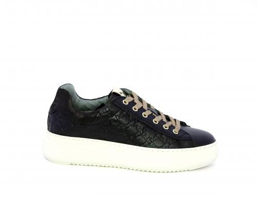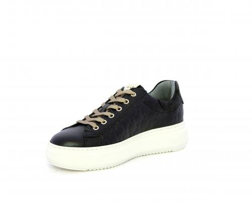 Sneakers con lacci, platfoarm in gomma, tomaia in pelle stampata tridimensionale, sottopiede e fodera interna in pelle, fusbet anatomico estraibile, con sistema DryGo che svolge una doppia azione assorbe l'aumidità quando la scarpa è indossata e si asciuga rapidamente quando si togli la calzatura.