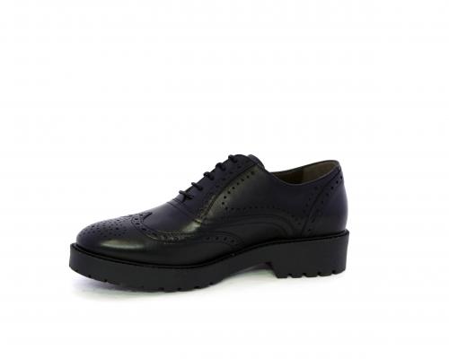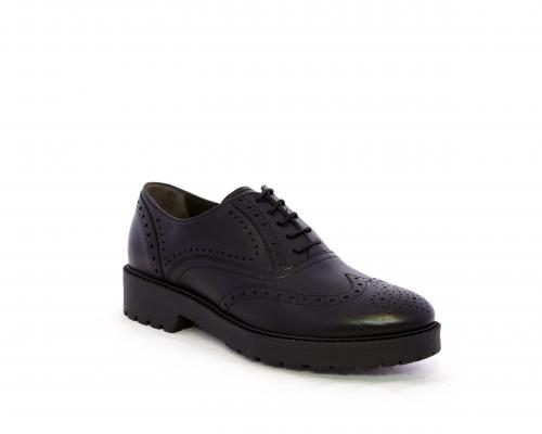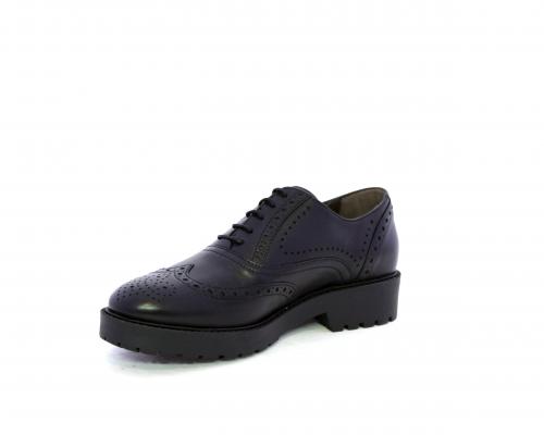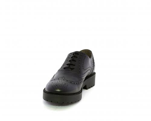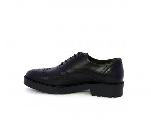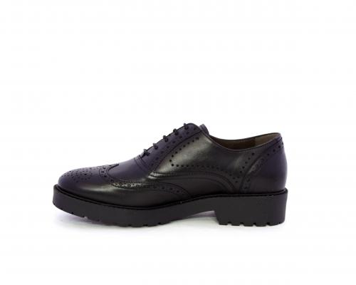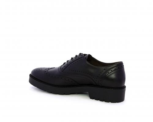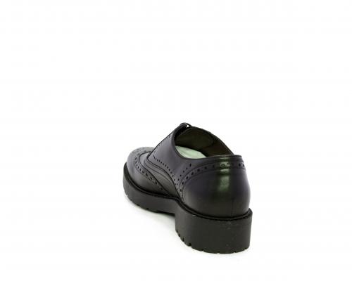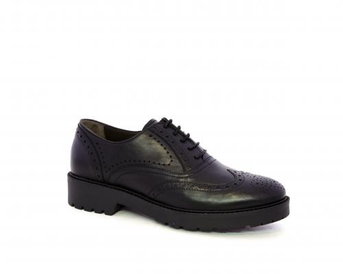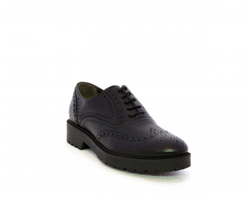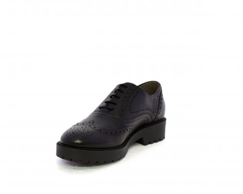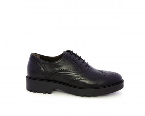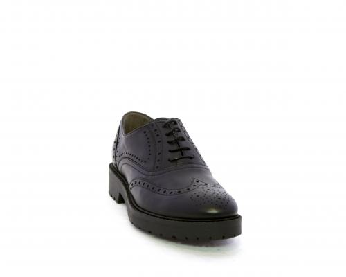 Scarpa con lacci, tacco e fondo in gomma, tomaia in pelle con disegno stile inglish, sottopiede e fodera interna in pelle, fusbet anatomico.