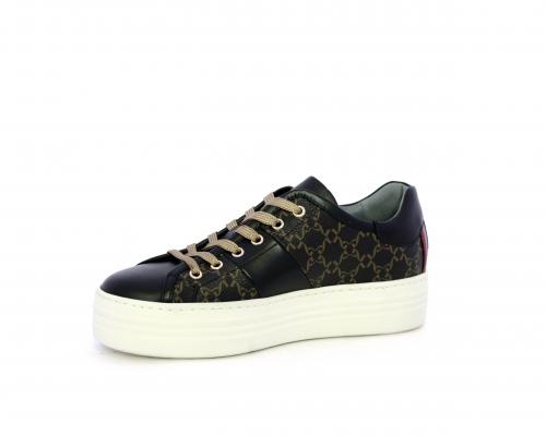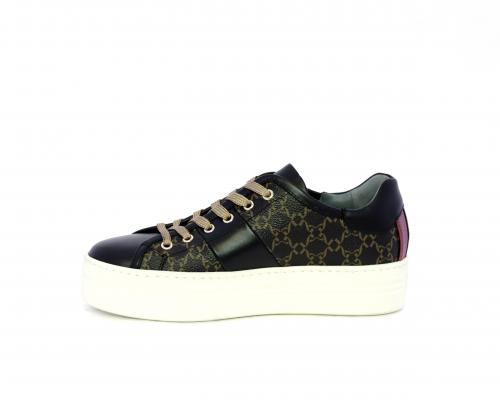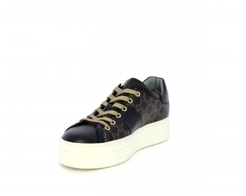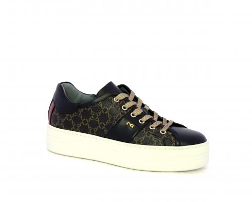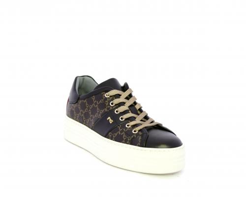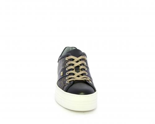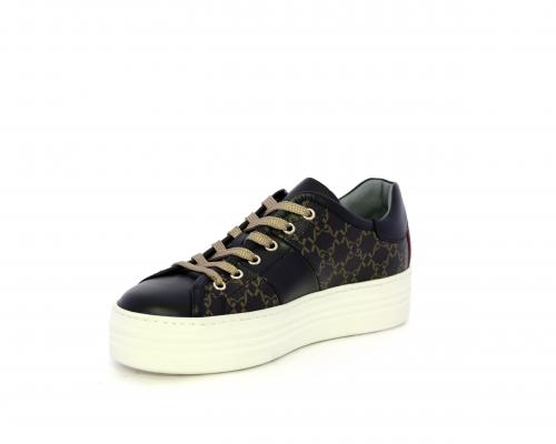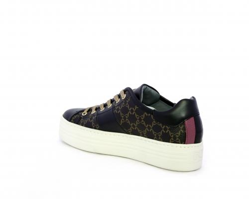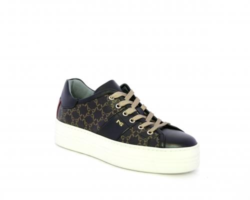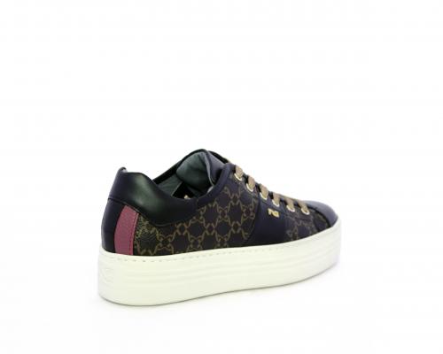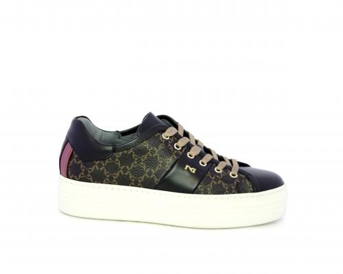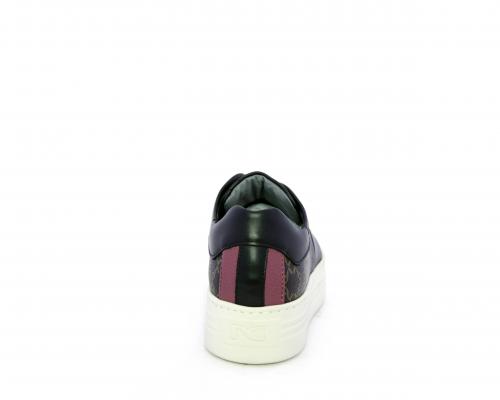 Sneakers con lacci, platfoarm in gomma, tomaia in pelle stampata con rifiniture colorate in pelle dietro al tallone, sottopiede e fodera interna in pelle, fusbet anatomico estraibile, con sistema DryGo che svolge una doppia azione assorbe l'aumidità quando la scarpa è indossata e si asciuga rapidamente quando si togli la calzatura.