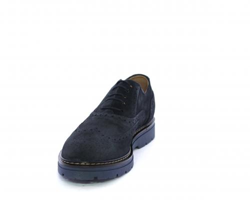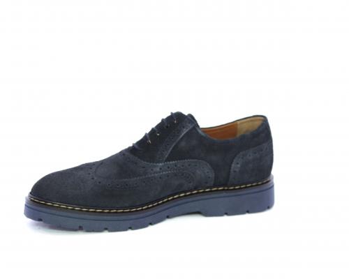 Scarpa con lacci, fondo in gomma, tomaia in camoscio con disegno stile inglish, sottopiede e fodera interna in pelle, fusbet anatomico.