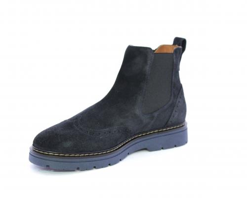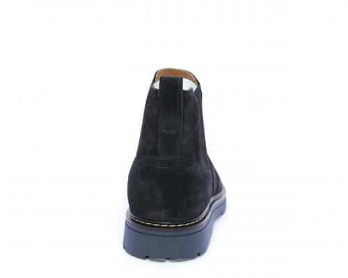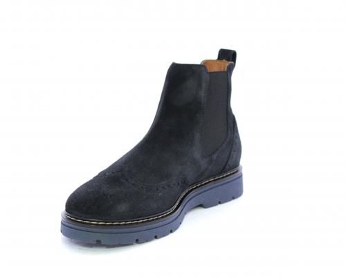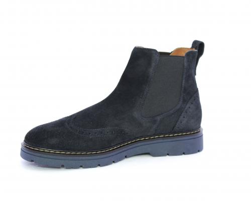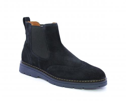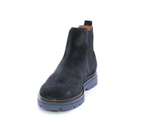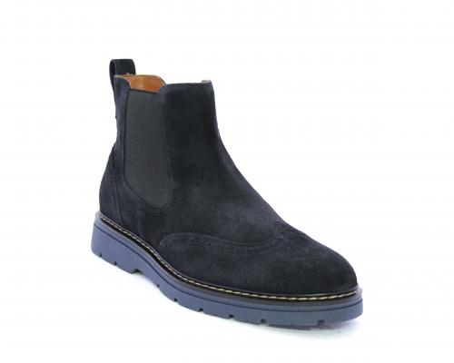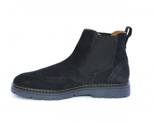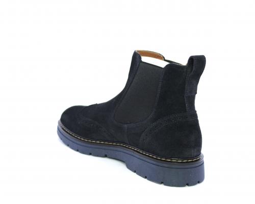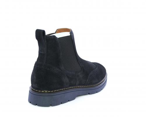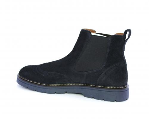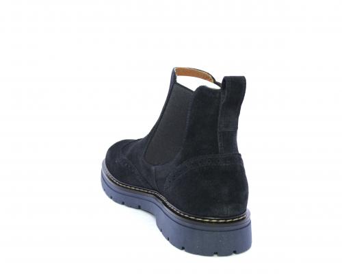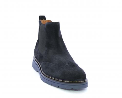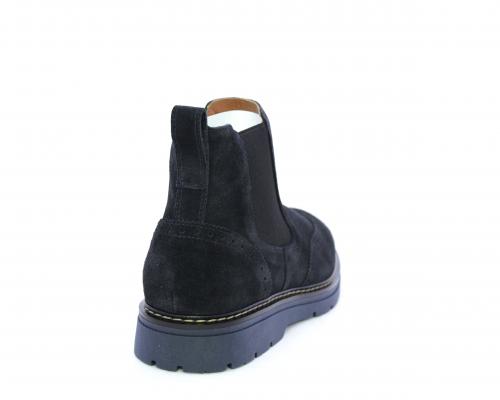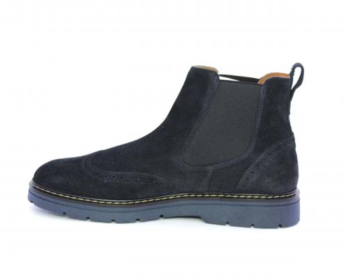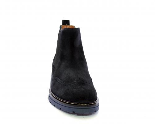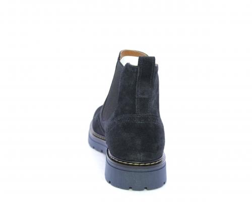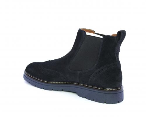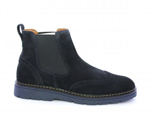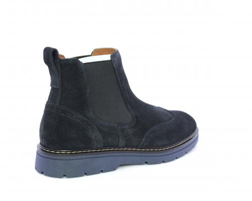 Stivaletto con doppio elastico, fondo in gomma, tomaia in camoscio con disegno stile inglish, sottopiede e fodera interna in pelle, fusbet anatomico.