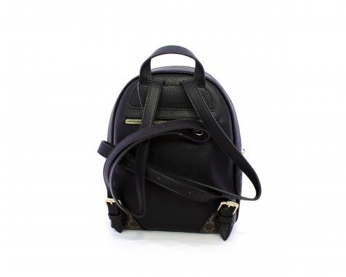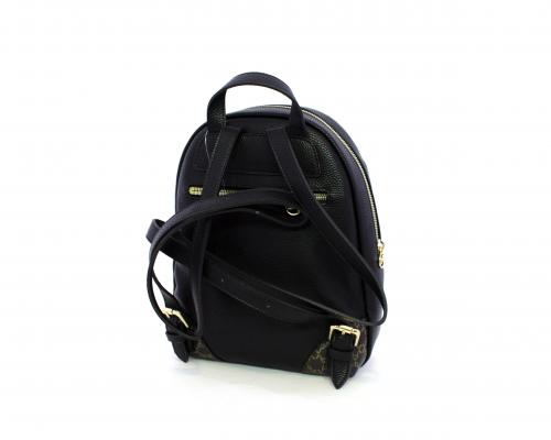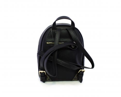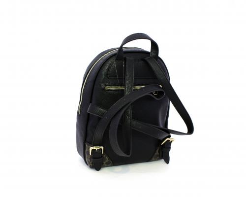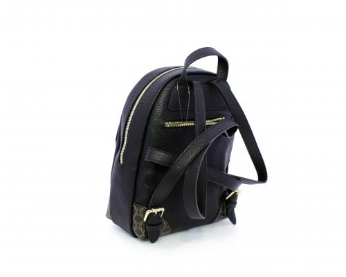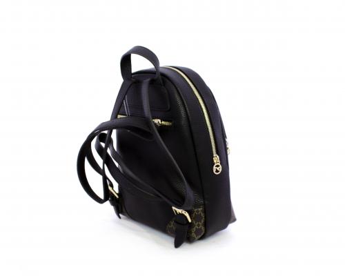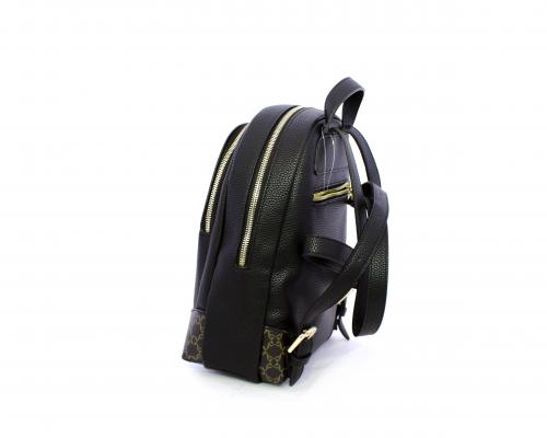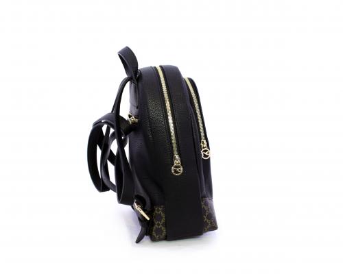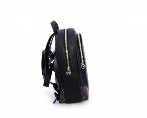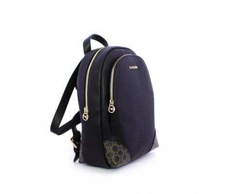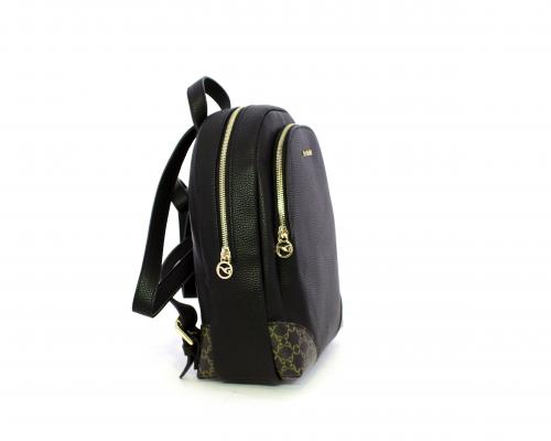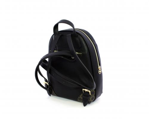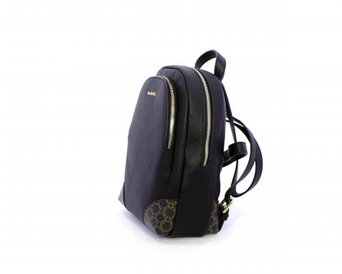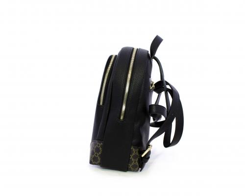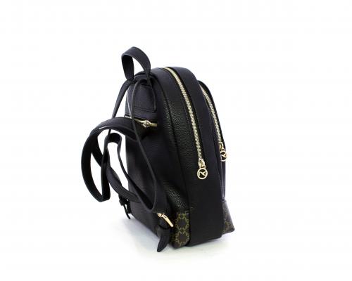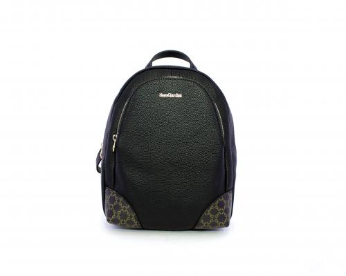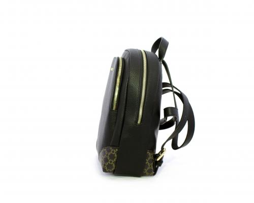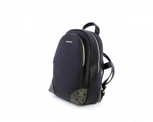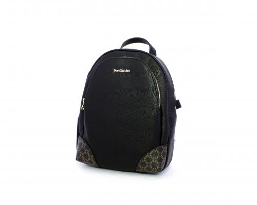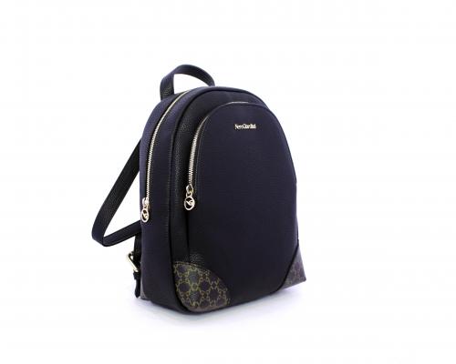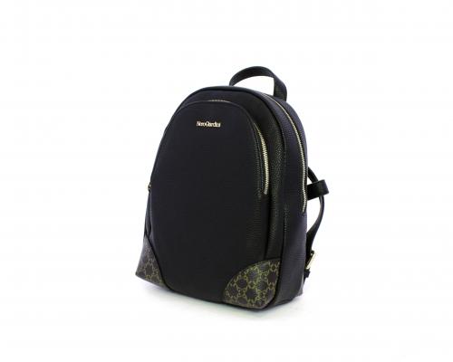 Zainetto in pelle tinta unita e bande angolari in pelle stampata con logo NG, zainetto diviso in due parti una più grande chiusa superiormente dalla cerniera e una tasca anteriore chiusa sempre con zip,rifiniture color oro, tracolle in pelle regolabili, fodera interna in tessuto con taschino interno.