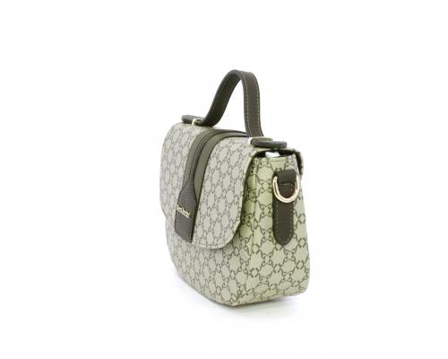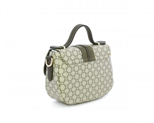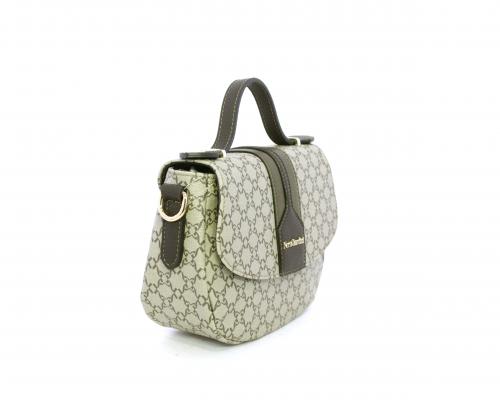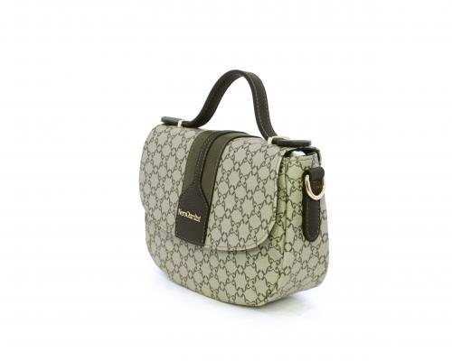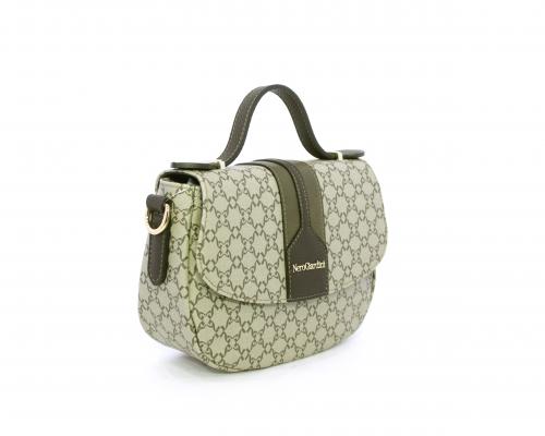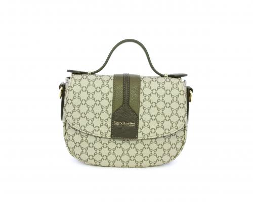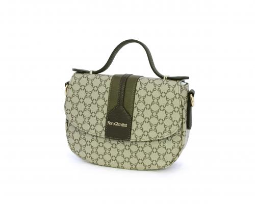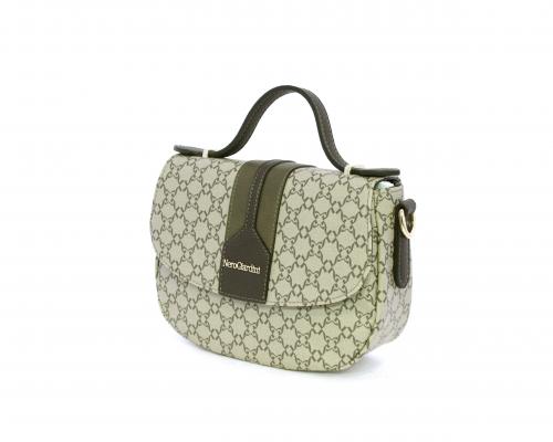 Borsa a forma di mezzaluna, in pelle stampata con logo NG e banda centrale in tinta unita, manico corto e possibilità di aggiungere la tracolla lunga regolabile in pelle, rifiniture color oro, fodera interna in tessuto.