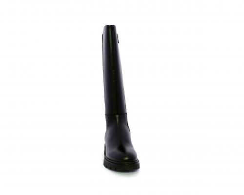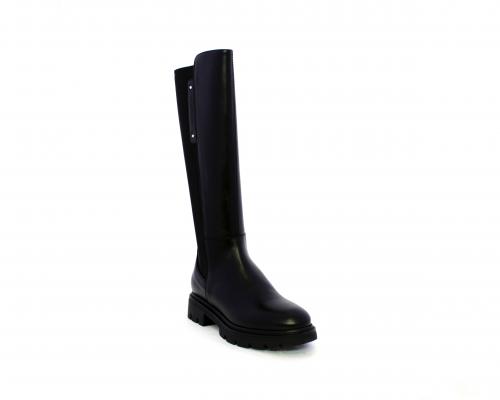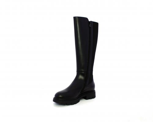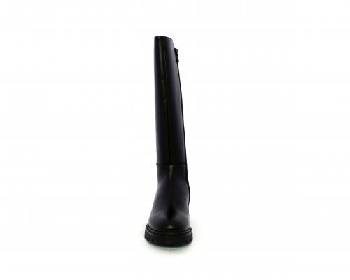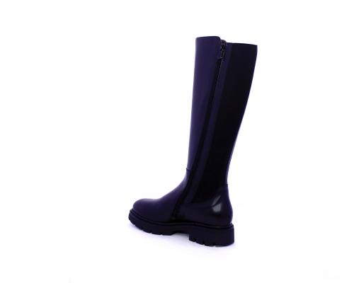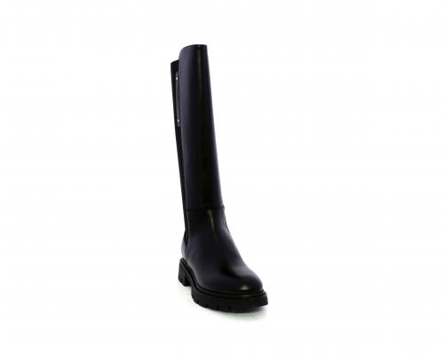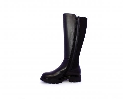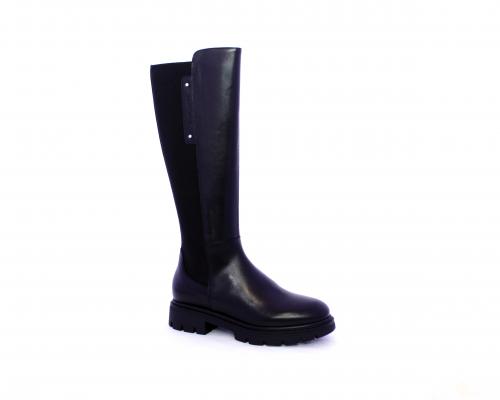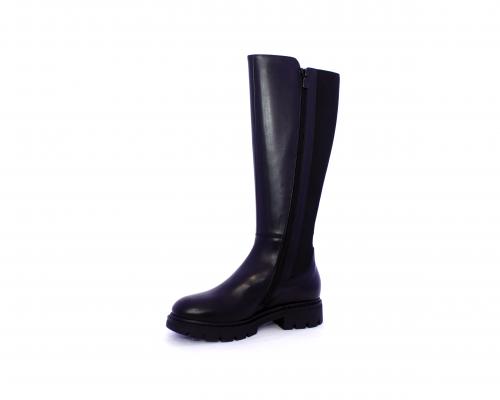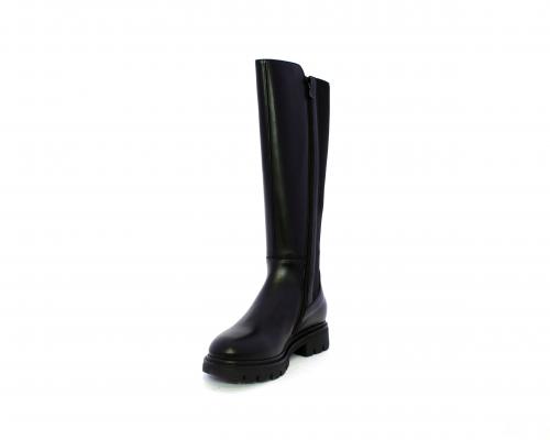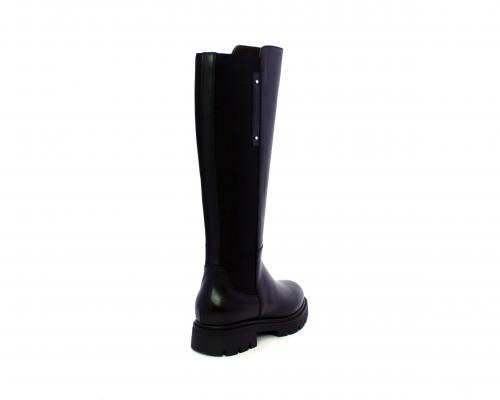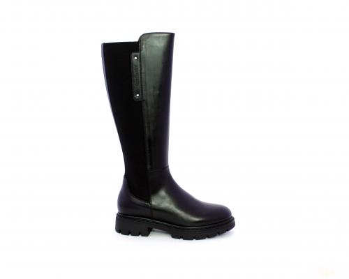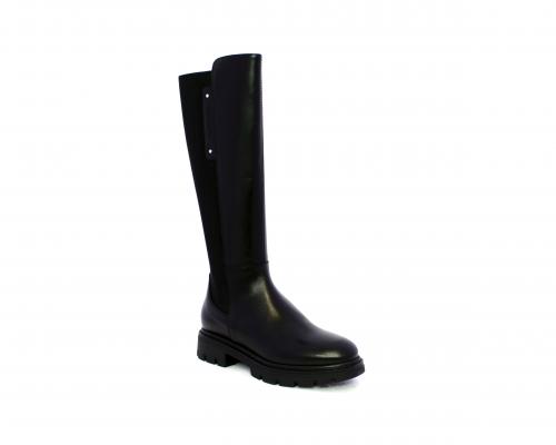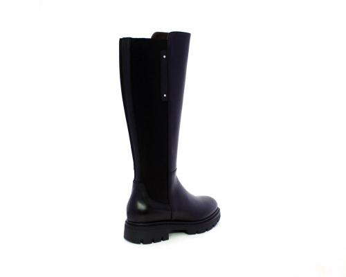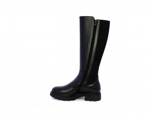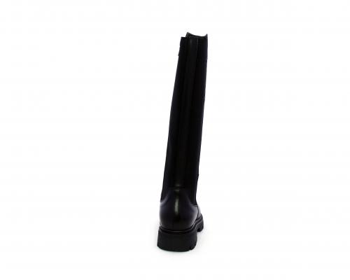 Stivale lungo con fondo in gomma, tomaia per metà in pelle e metà in tessuto elasticizzato, con chiusura con zip intera, sottopiede e fodera interna in pelle, fusbet anatomico.