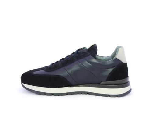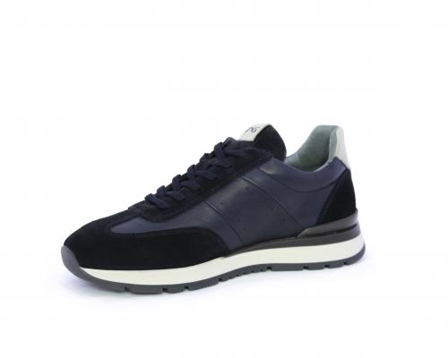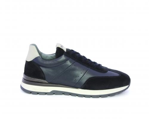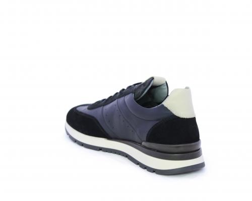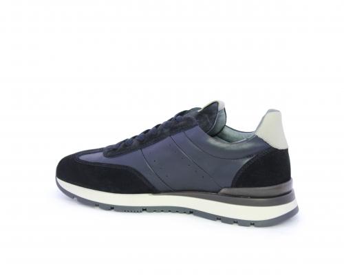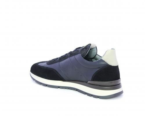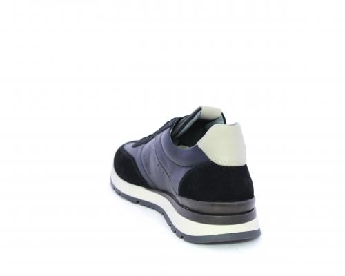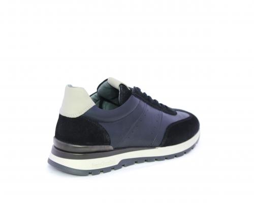 Sneakers con lacci, fondo in gomma con doppio colore, tomaia in pelle con inserti in camoscio, sottopiede e fodera interna in pelle, fusbet anatomico estraibile con sistema DryGo, che svolge una doppia azione assorbe l'umidità quando la scarpa è indossata e si asciuga rapidamente quando si toglie la calzatura.