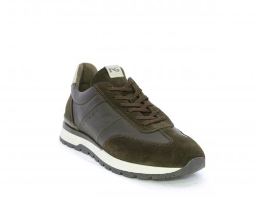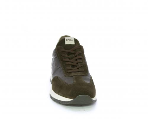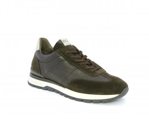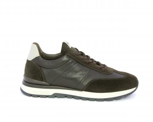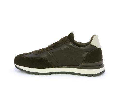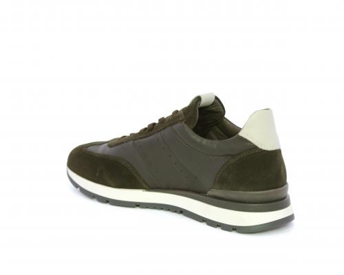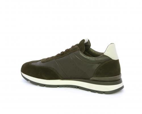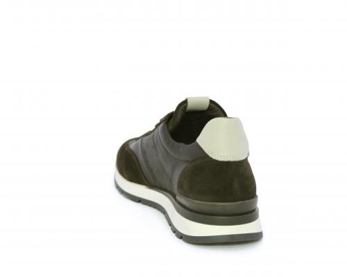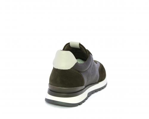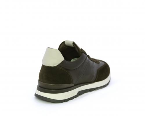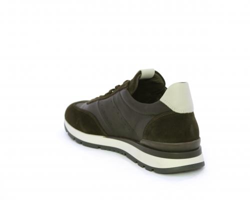 Sneakers con lacci, fondo in gomma con doppio colore, tomaia in pelle con inserti in camoscio, sottopiede e fodera interna in pelle, fusbet anatomico estraibile con sistema DryGo, che svolge una doppia azione assorbe l'umidità quando la scarpa è indossata e si asciuga rapidamente quando si toglie la calzatura.