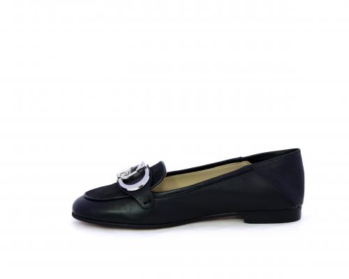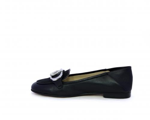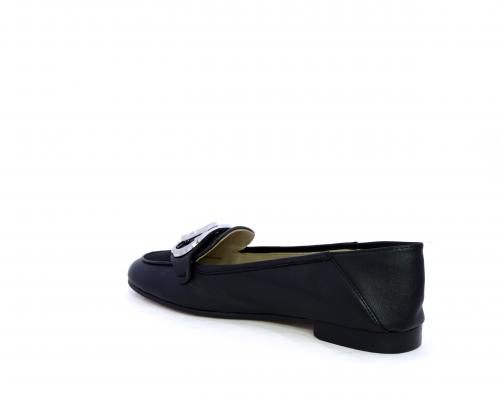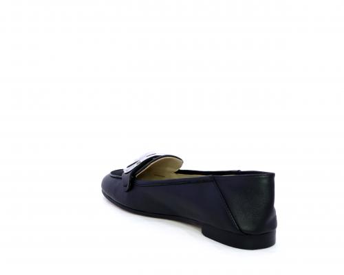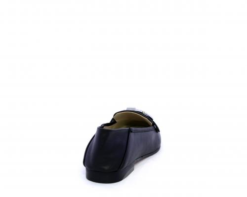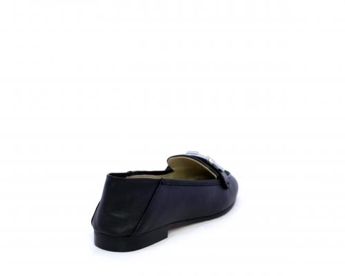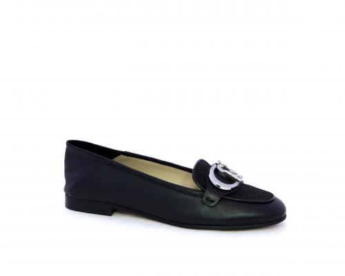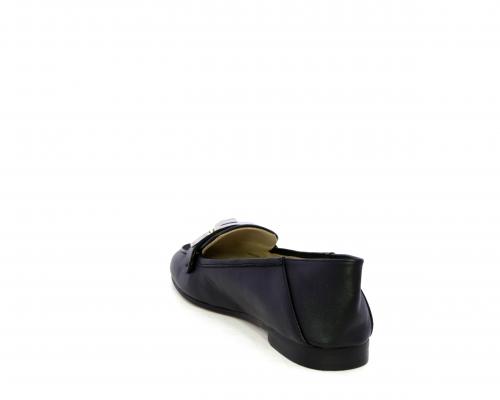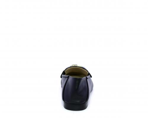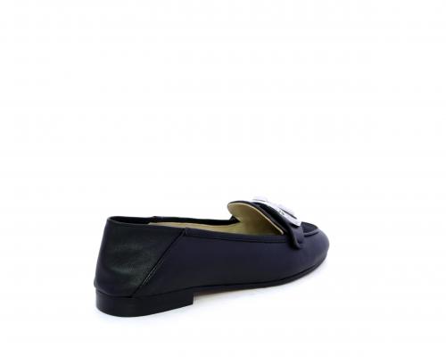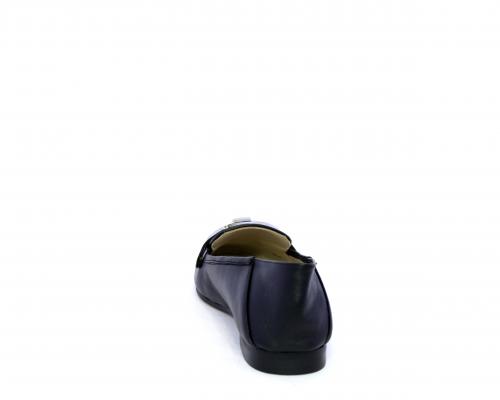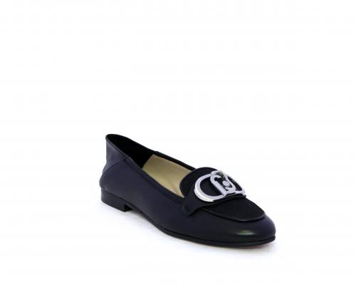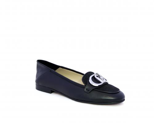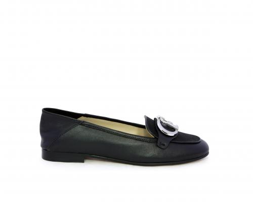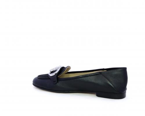 Mocassino fondo cuoio, tomaia in pelle con fibbia in acciaio e parte superiore della tomaia in tessuto, pelle elastica dietro al tallone, sottopiede e fodera interna in pelle, fusbet anatomico.