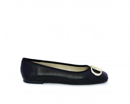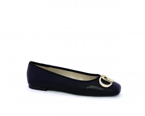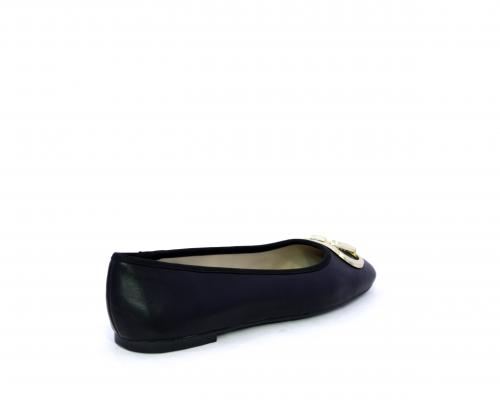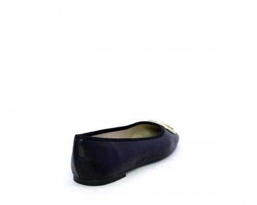 Ballerina fondo cuoio, tomaia in pelle con fibbia in acciaio satinata, sottopiede e fodera interna in pelle, fusbet anatomico.