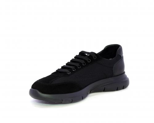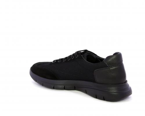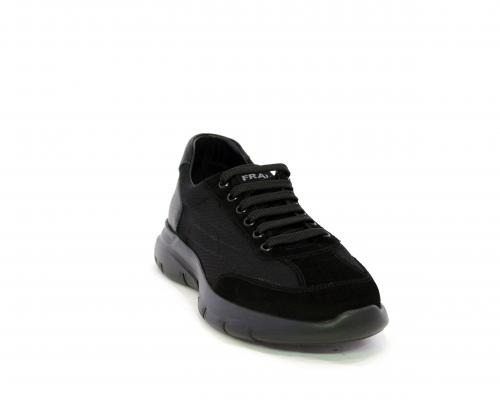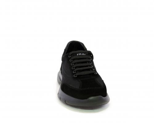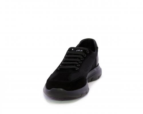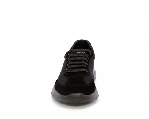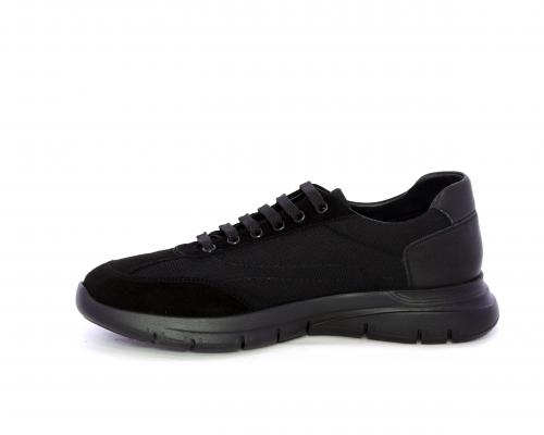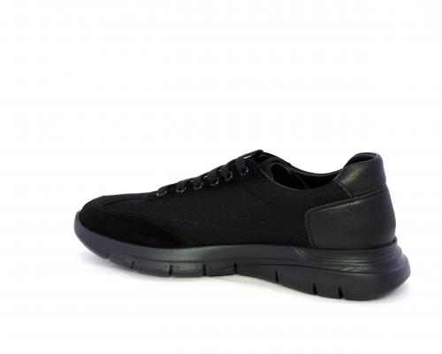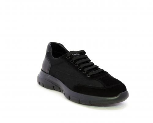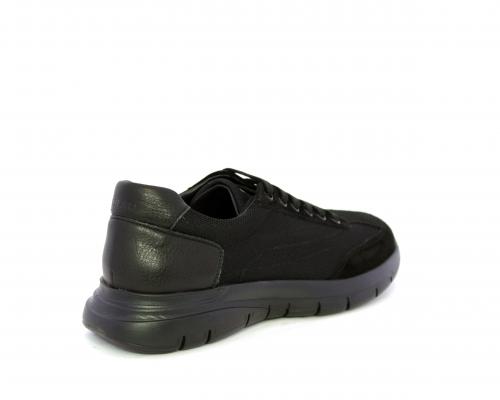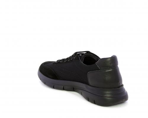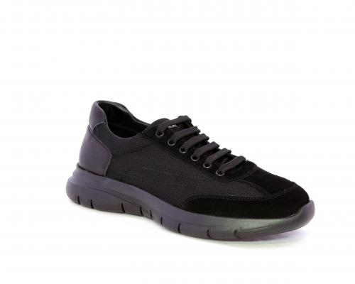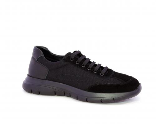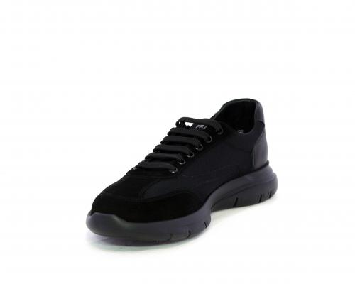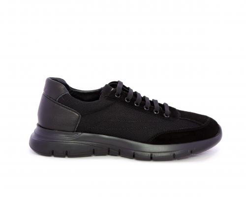 Sneakers con lacci, fondo in gomma, tomaia in suede e in tessuto con inserti in pelle dietro al tallone, sottopiede in tessuto, fodera interna in pelle, fusbet estraibile con memory foam.