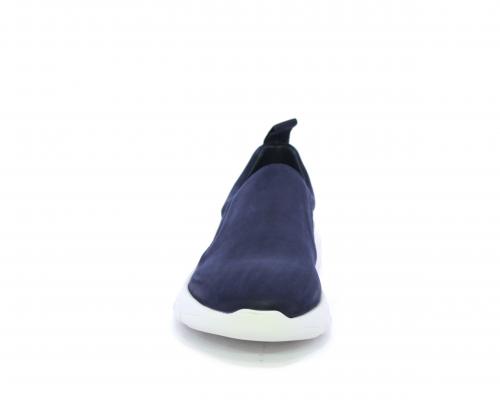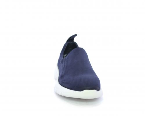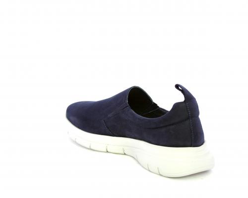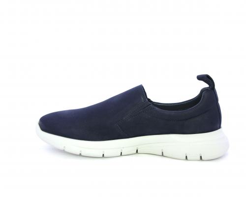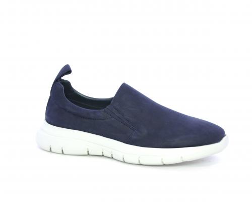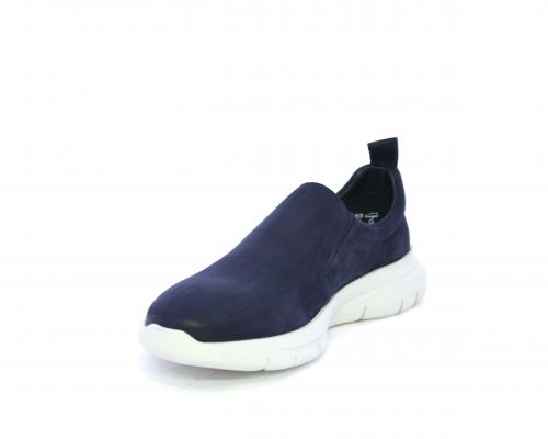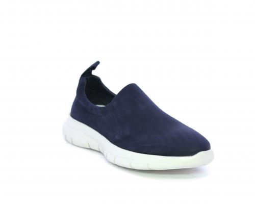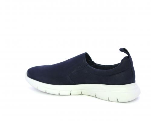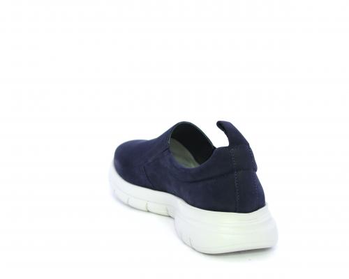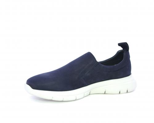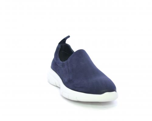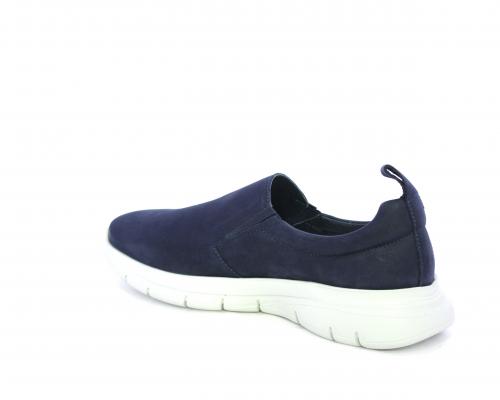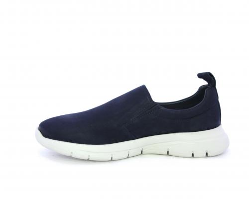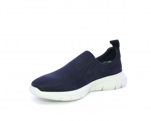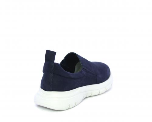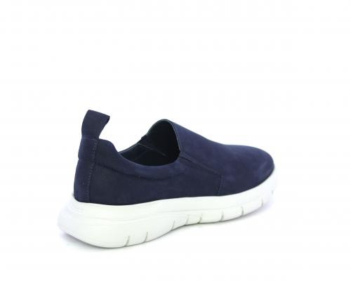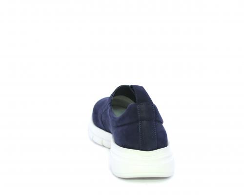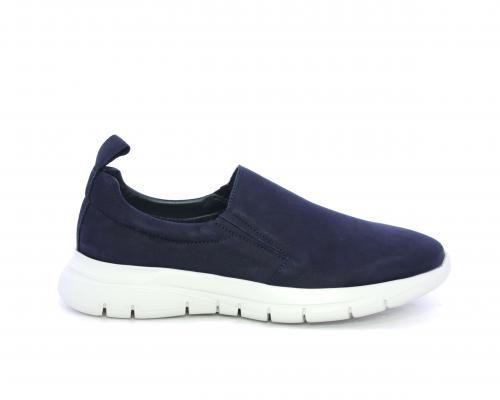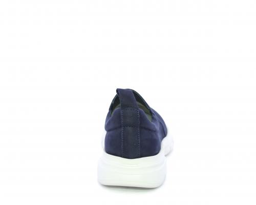 Sneakers senza lacci con doppio elastico sul collo della scarpa, fondo in gomma, tomaia in suede, sottopiede in tessuto, fodera interna in pelle, fusbet estraibile con memory foam.