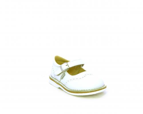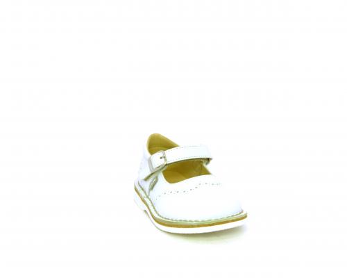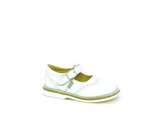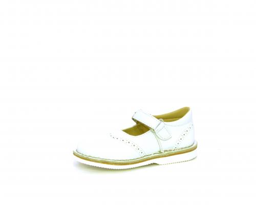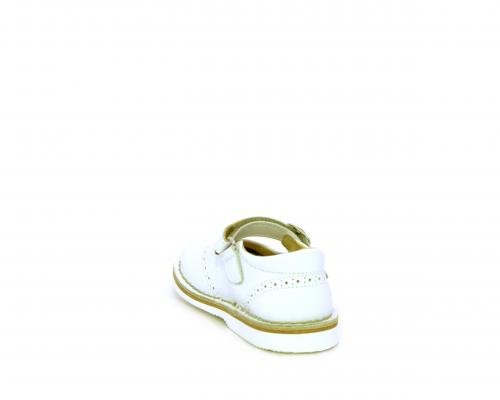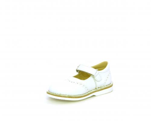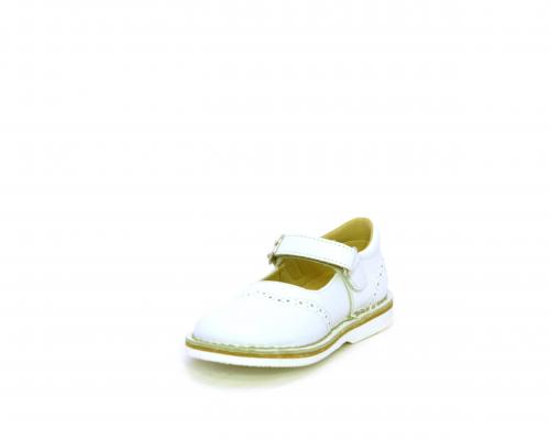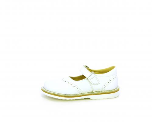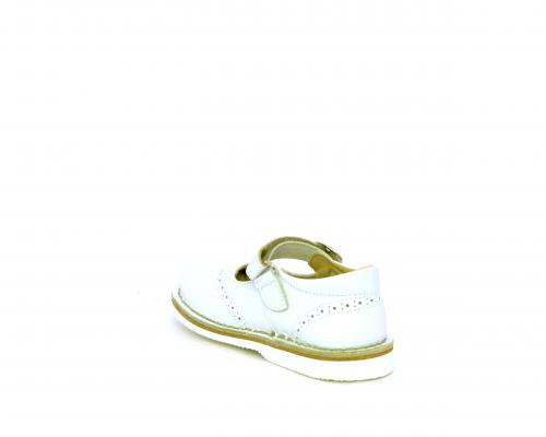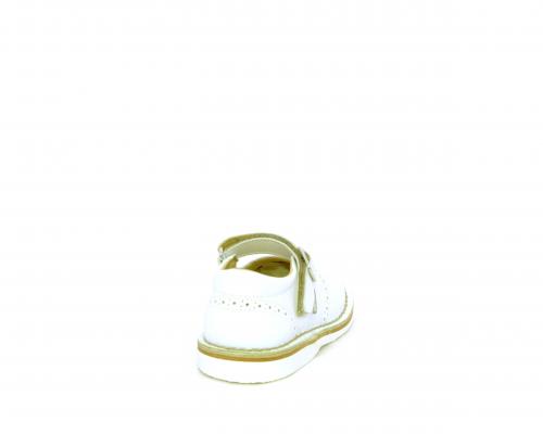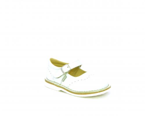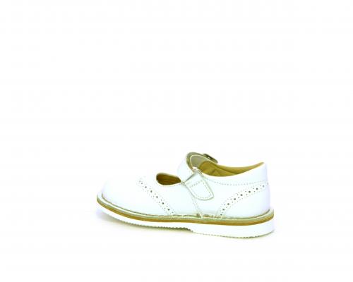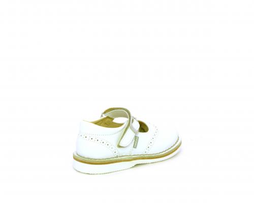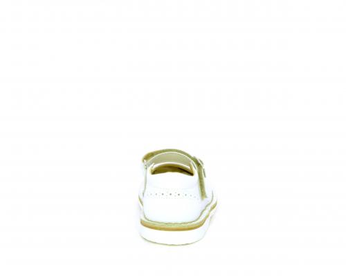 Ballerina fondo in gomma, tomaia in pelle con velcro, sottopiede e fodera interna in pelle.