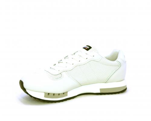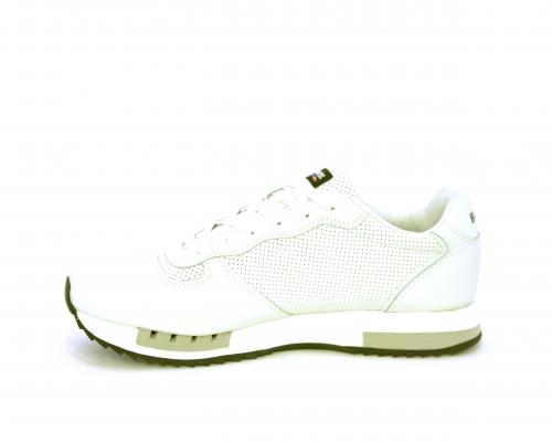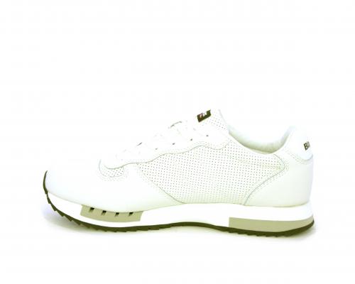 Sneakers con lacci, fondo in gomma, tomaia in pelle con logo laterale, sottopiede e fodera interna in pelle, fusbet anatomico estraibile.