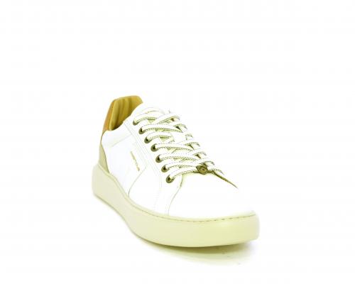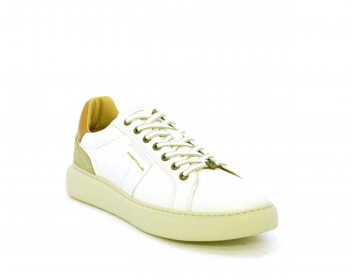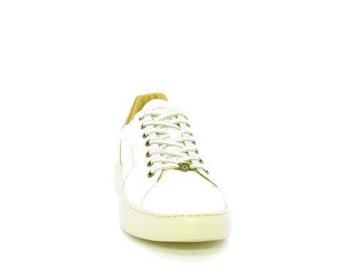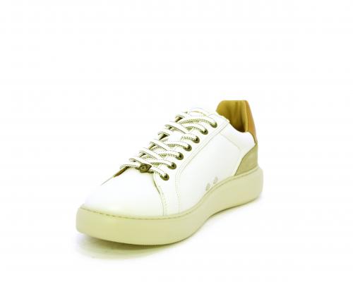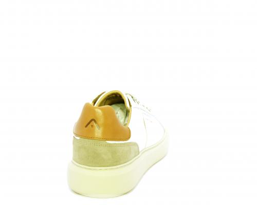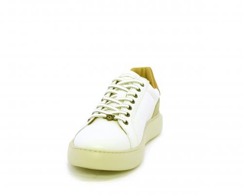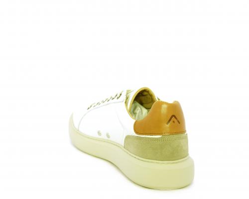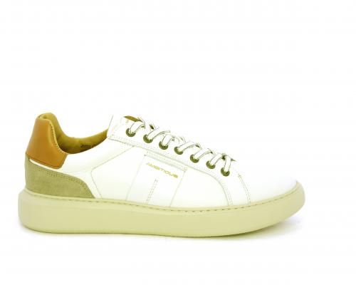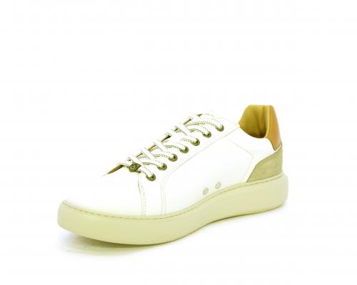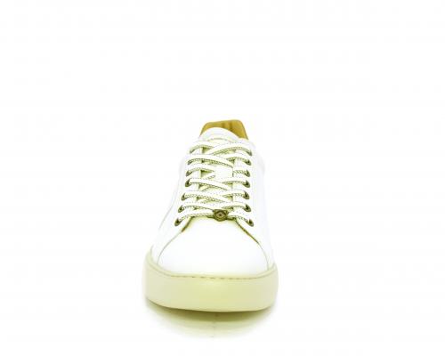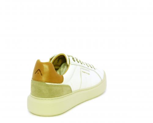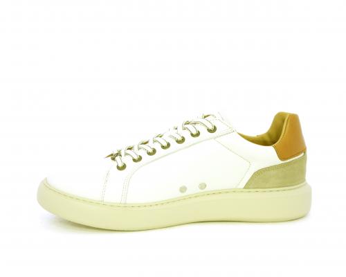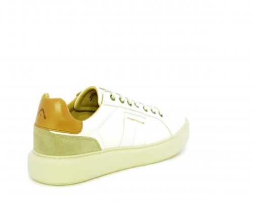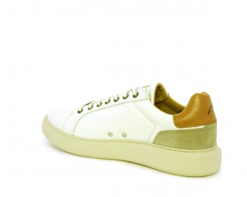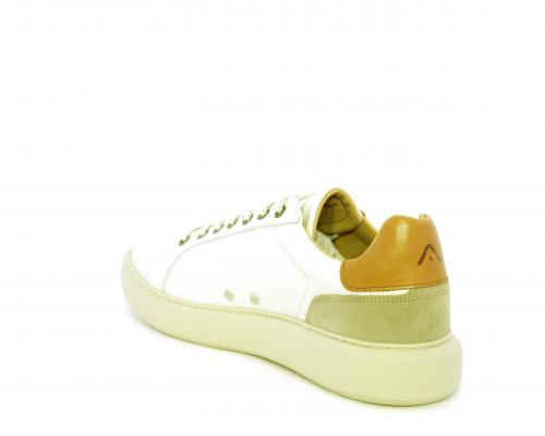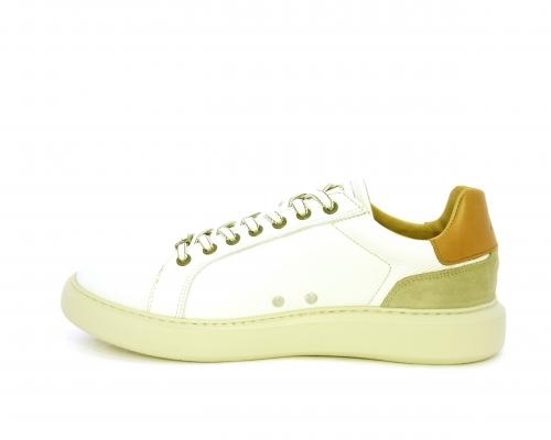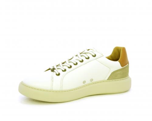 Sneakers con doppio laccio di ricambio, fondo in gomma, tomaia in pelle con inserto in suede dietro al tallone, sottopide e fodera interna in pelle, fusbet estraibile con memory foam.