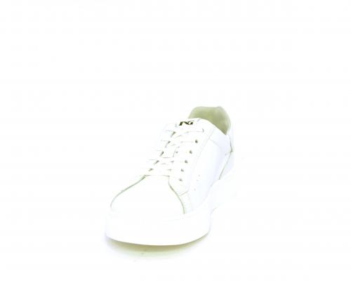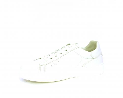 Sneakers con lacci, fondo in gomma bianco, tomaia in pelle, sottopiede e fodera interna in pelle, fusbet estraibile con sistema DryGo, che svolge una doppia azione assorbe l'umidità quando si indossa la scarpe e si asciuga rapidamente quando si toglie la calzatura.