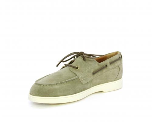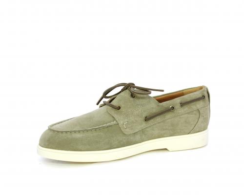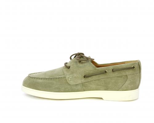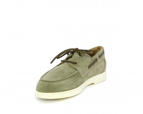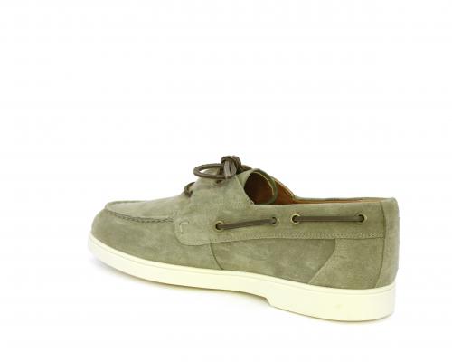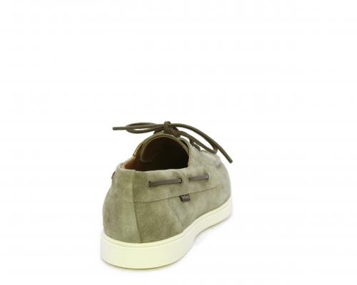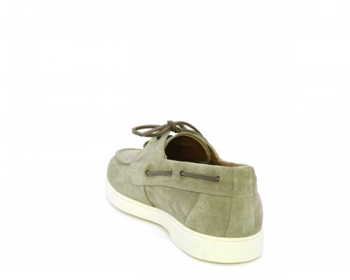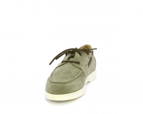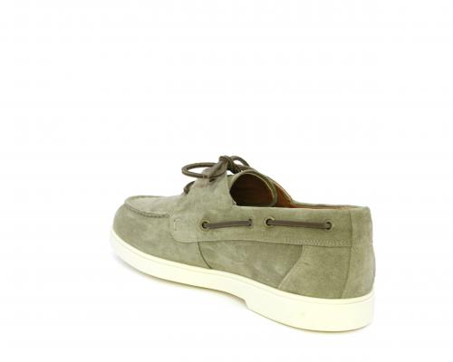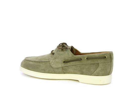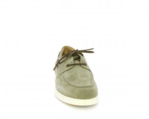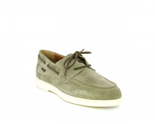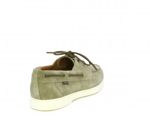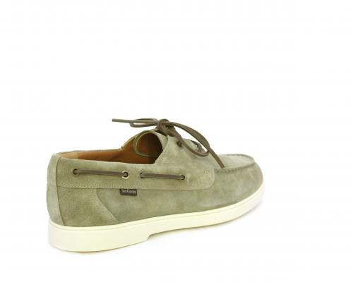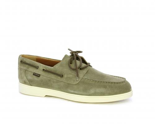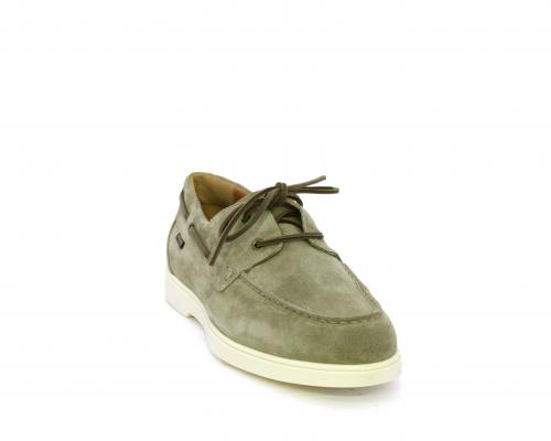 Scarpa con lacci in cuoio, fondo in gomma bianca, tomaia in suede, sottopiede e fodera interna in pelle, fusbet estraibile con sistema DryGo, che svolge una doppia azione assorbel'umidità quando si indossa la scarpa e si asciuga rapidamente quando si la calzatura viene tolta.