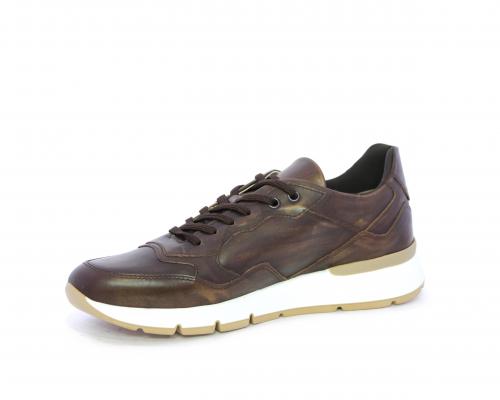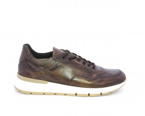 Sneakers con lacci, fondo in gomma, tomaia in pelle, sottopiede e fodera interna in pelle, fusbet estraibile con sistema DryGo, che svolge una doppia azione assorbel'umidità quando si indossa la scarpa e si asciuga rapidamente quando si la calzatura viene tolta.