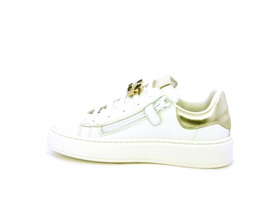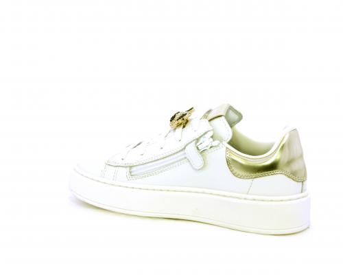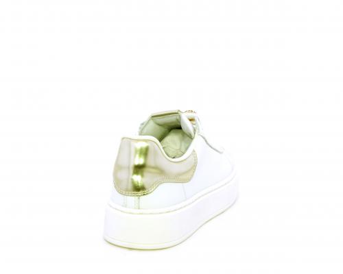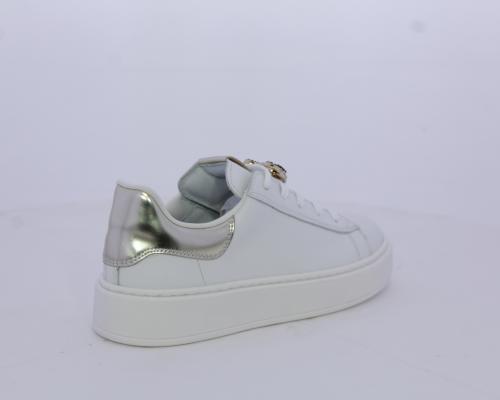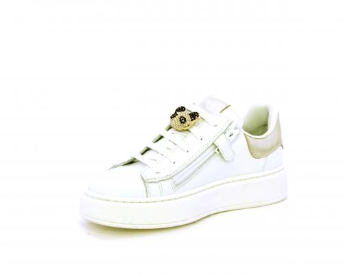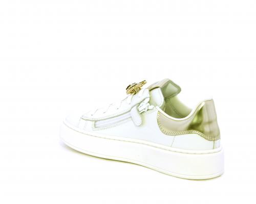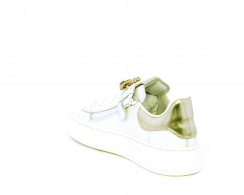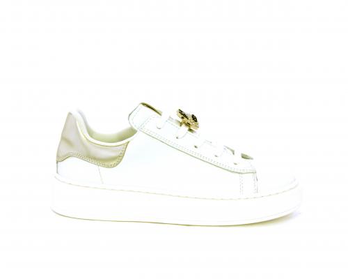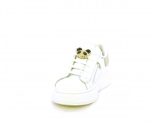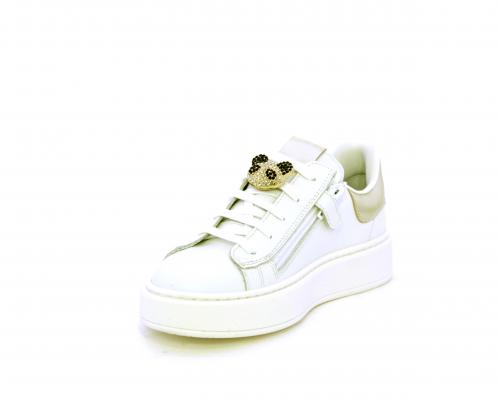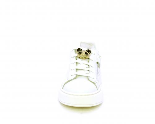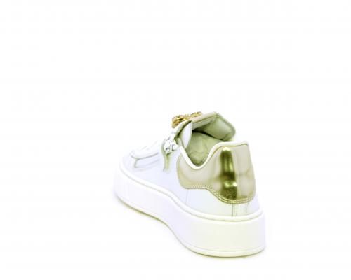 Sneakers con lacci e chiusura laterale, platfoarm in gomma, tomaia in pelle con accessorio con brillatini sui lacci che può essere rimosso, cuscinetto intorno alla caviglia, sottopiede e fodera interna in pelle, fusbet estraibile.