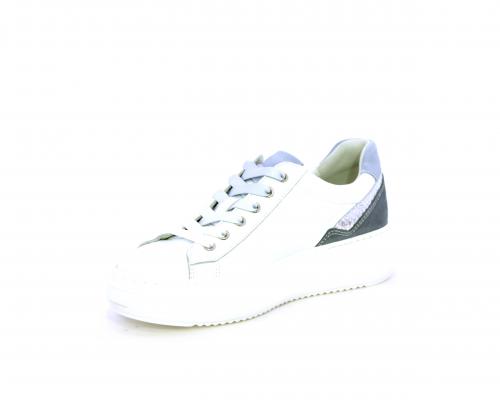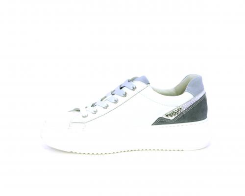 Sneakers con lacci sfumati bicolor, platfoam in gomma bianco, tomaia in pelle con inserti in suede dietro al tallone, sottopiede e fodera interna in pelle, fusbet estraibile con sistema DryGo, che svolge una doppia azione assorbe l'umidità quando si indossa la scarpe e si asciuga rapidamente quando si toglie la calzatura.