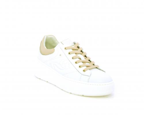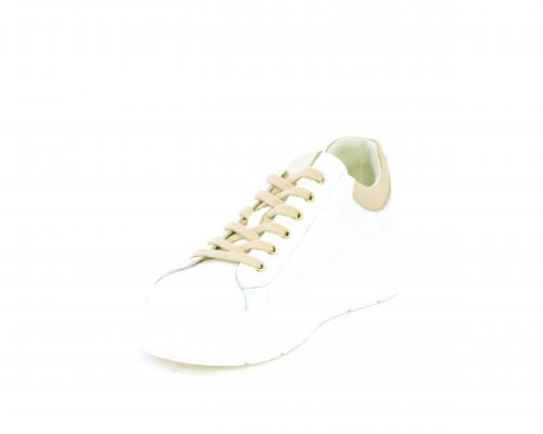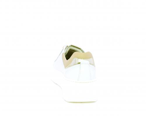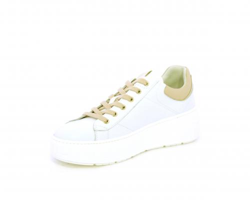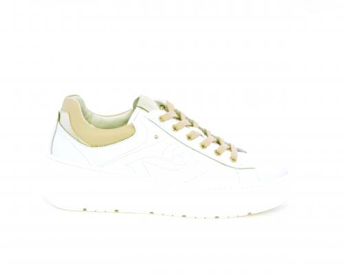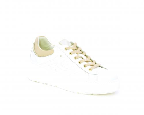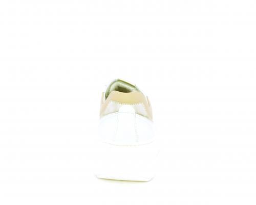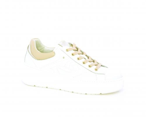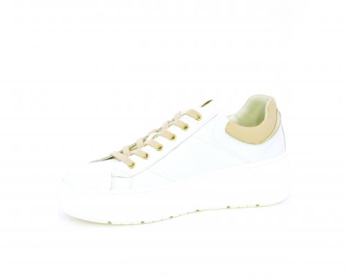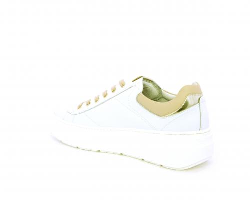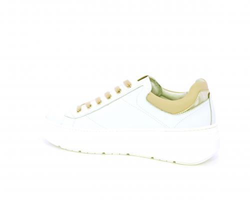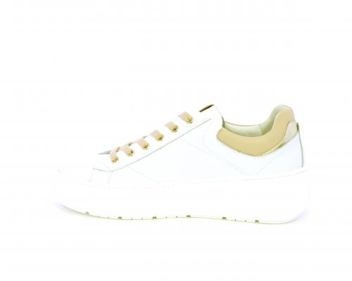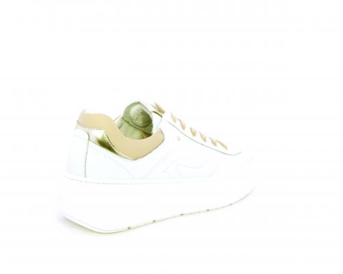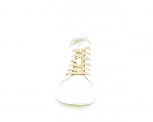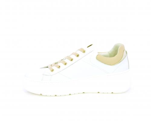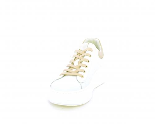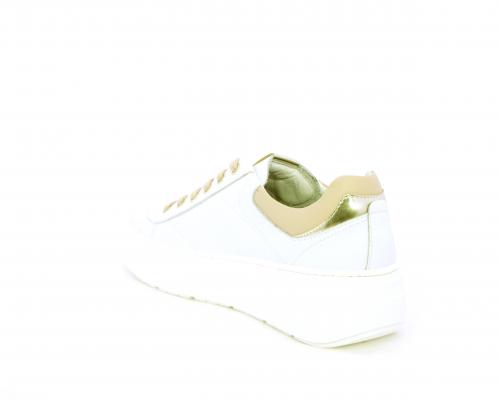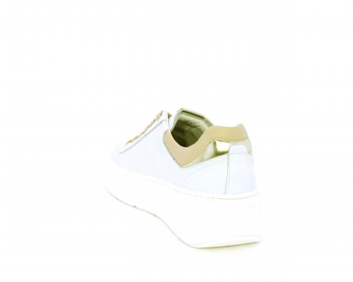 Sneakers con lacci, zeppa e platfoarm in gomma bianca, tomaia in pelle, sottopiede e fodera interna in pelle, fusbet estraibile con sistema DryGo, che svolge una doppia azione assorbe l'umidità quando si indossa la scarpe e si asciuga rapidamente quando si toglie la calzatura.