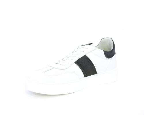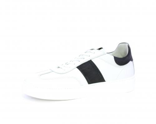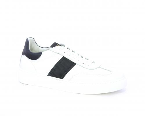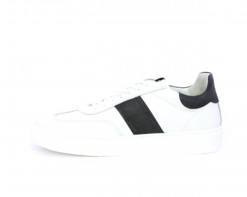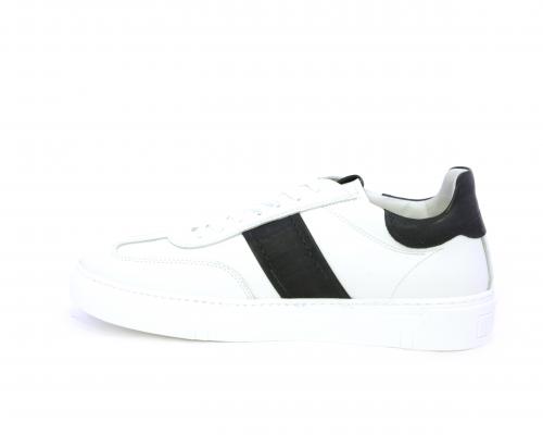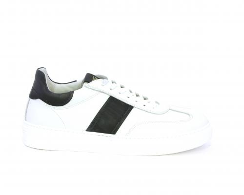Sneakers con lacci, fondo in gomma bianca, tomaia in pelle con banda laterale in pelle incanto, sottopiede e fodera interna in pelle, fusbet estraibile con sistema DryGo, che svolge una doppia azione assorbel'umidità quando si indossa la scarpa e si asciuga rapidamente quando si la calzatura viene tolta.