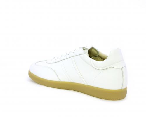 Sneakers con lacci, fondo in gomma sabbia, tomaia in pelle, sottopiede e fodera interna in pelle, fusbet con memory.