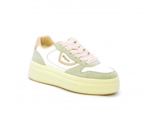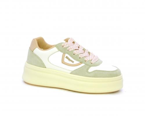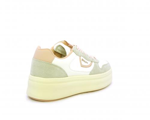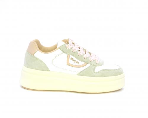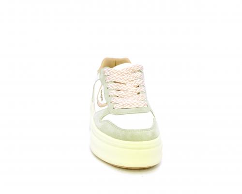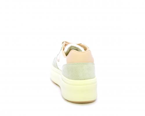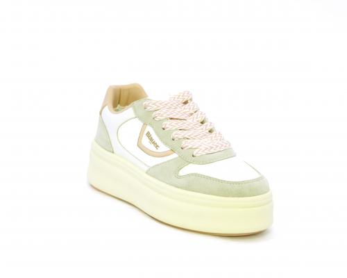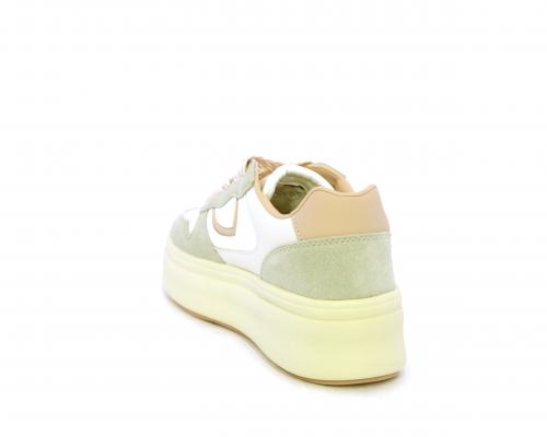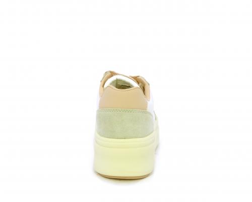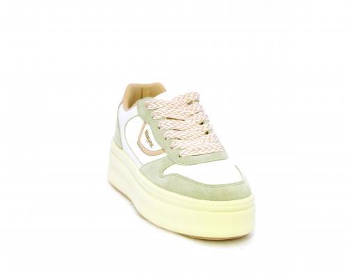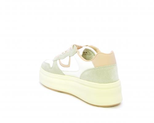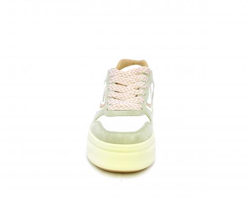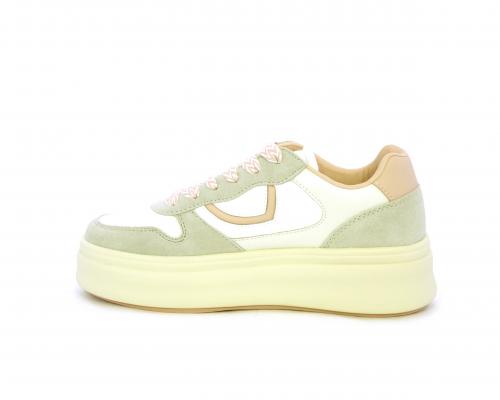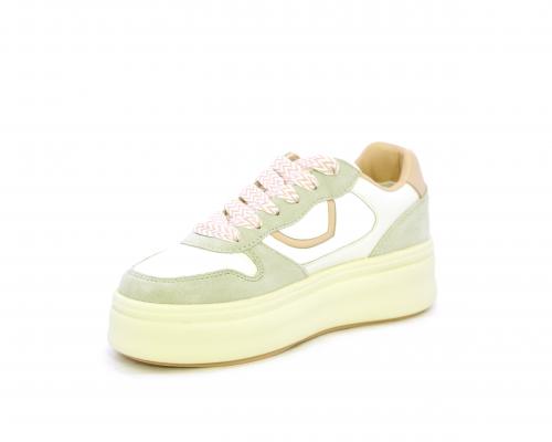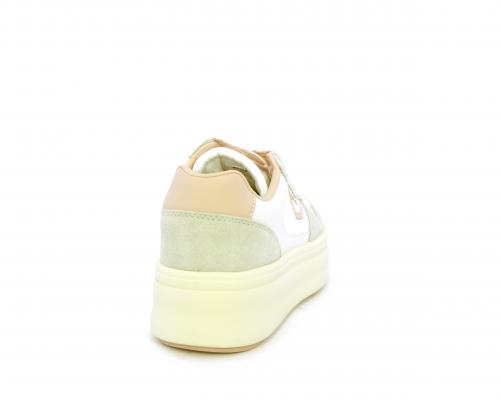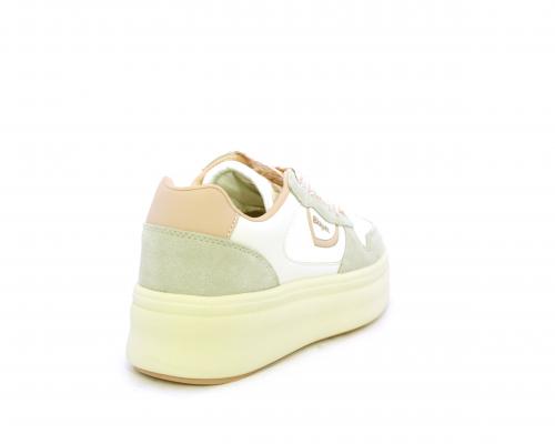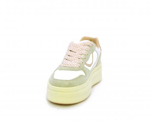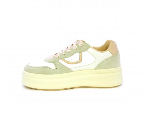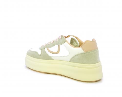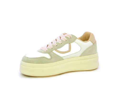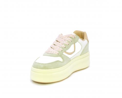 Sneakers con lacci, platfoarm in gomma beige, tomaia in pelle e suede, sottopiede e fodera interna in pelle, fusbet estraibile.