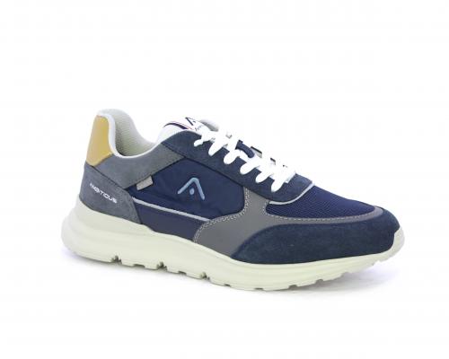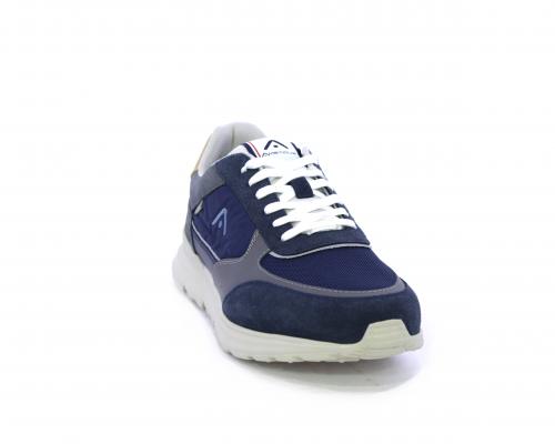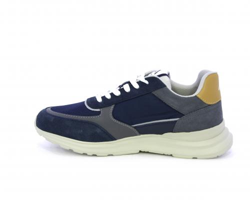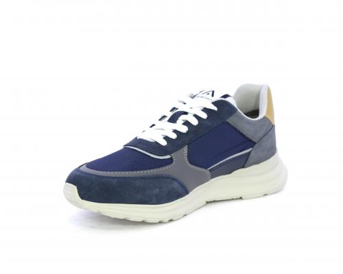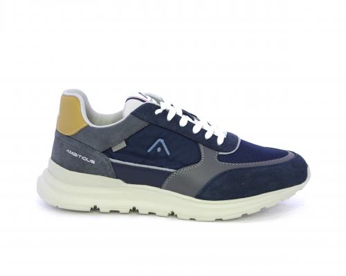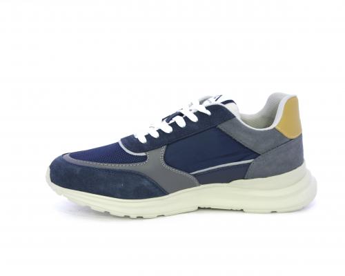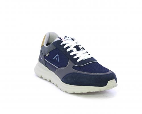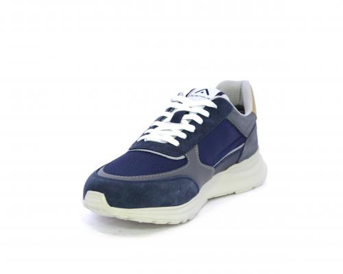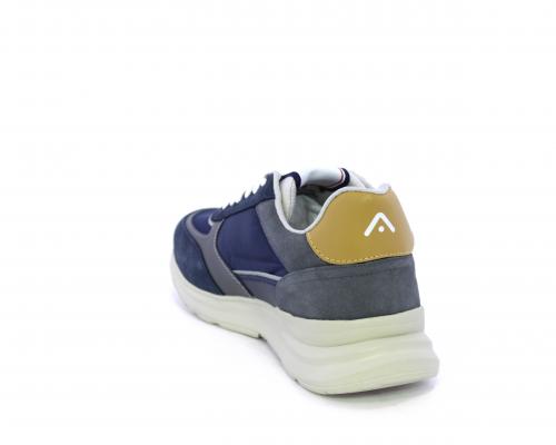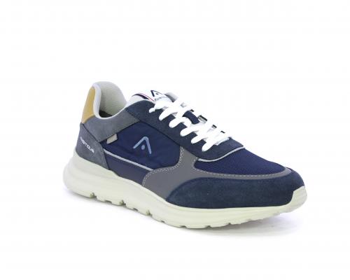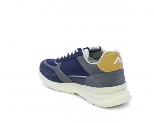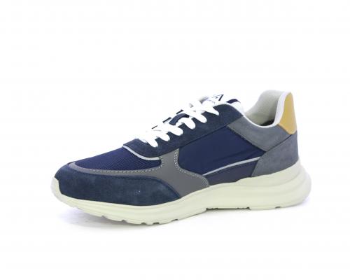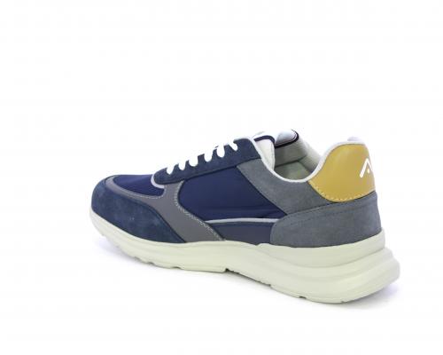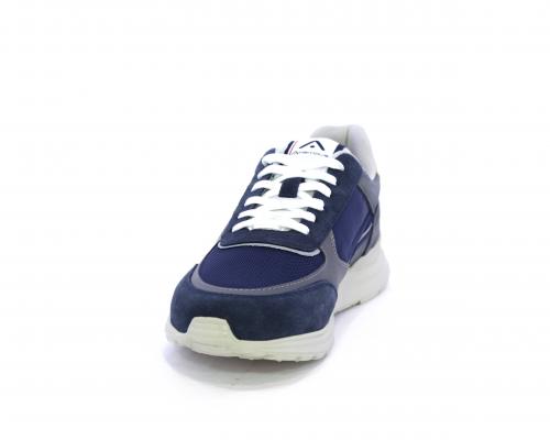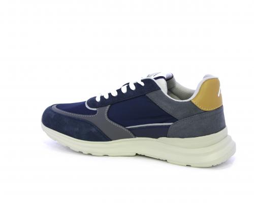 Sneakers con doppio laccio sia bianco sia grigio, fondo in gomma ultraleggera, tomaia mista in suede e tessuto con parti in pelle, sottopiede in pelle, fodera interna in tessuto, fusbet estraibile con memory.