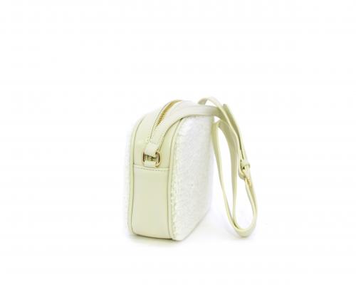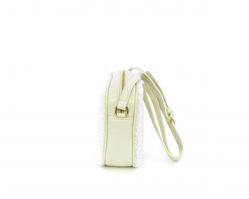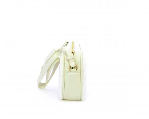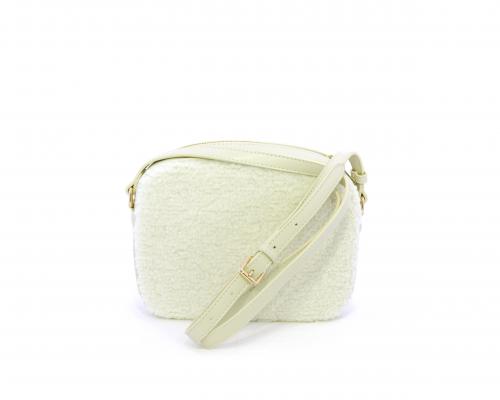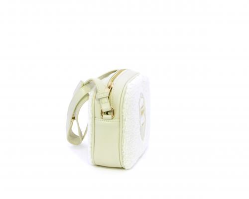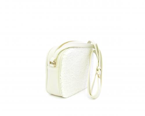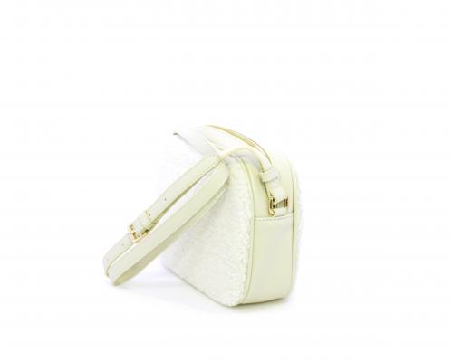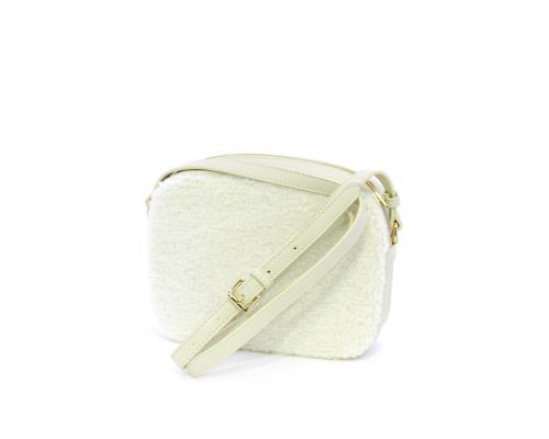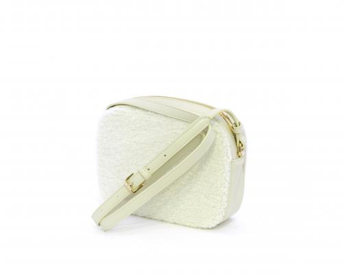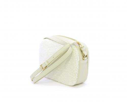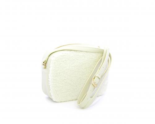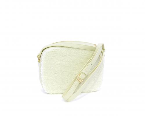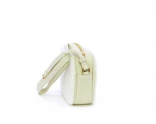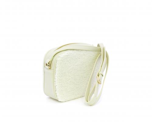 Borsa modello chanel in pelle e pelliccia ecologica, tracolla in pelle regolabile, chiusura della borsa con cerniera, fodera interna in tessuto e all'interno doppio taschino uno aperto e uno chiuso con zip.