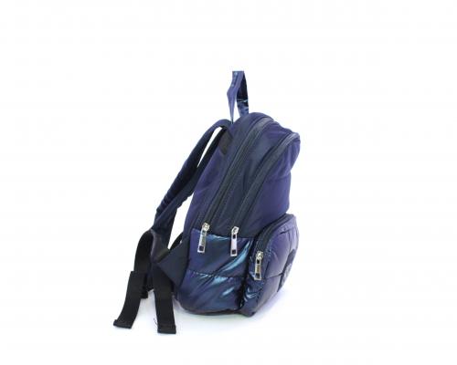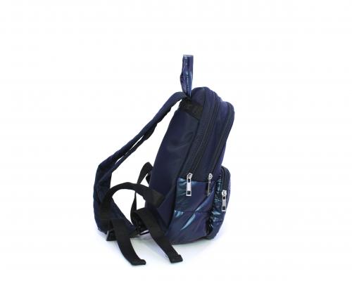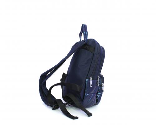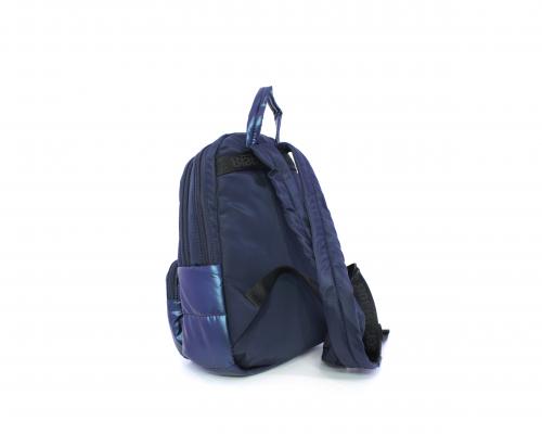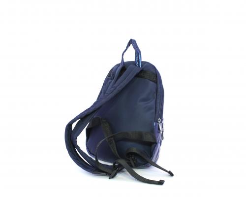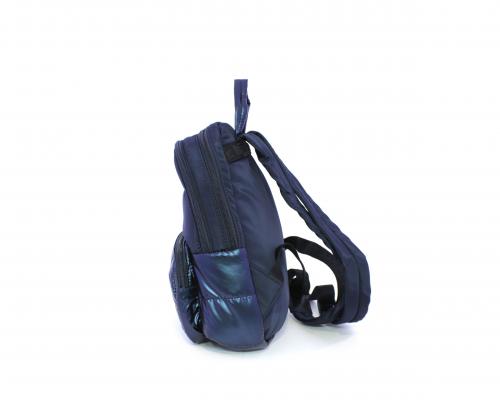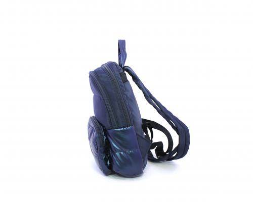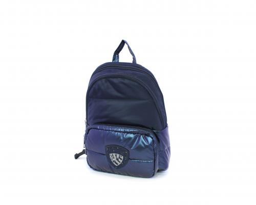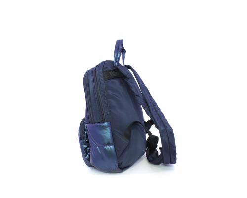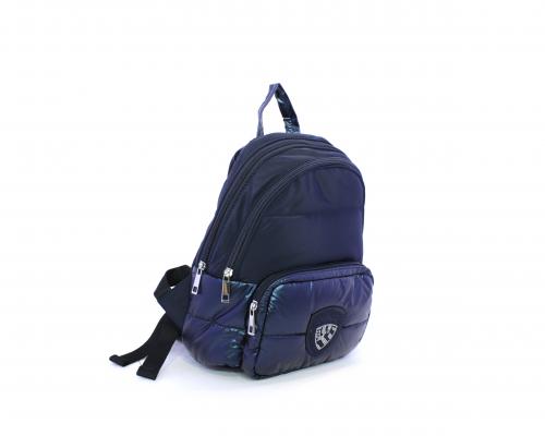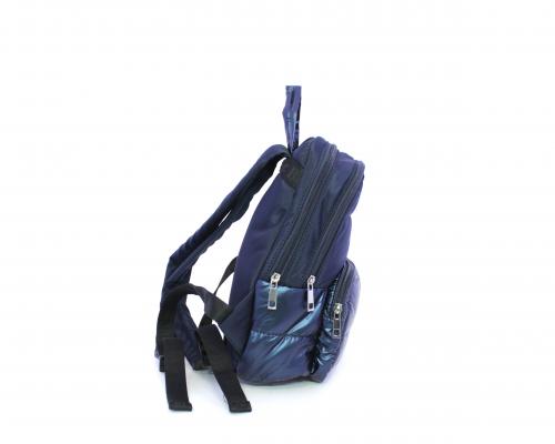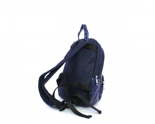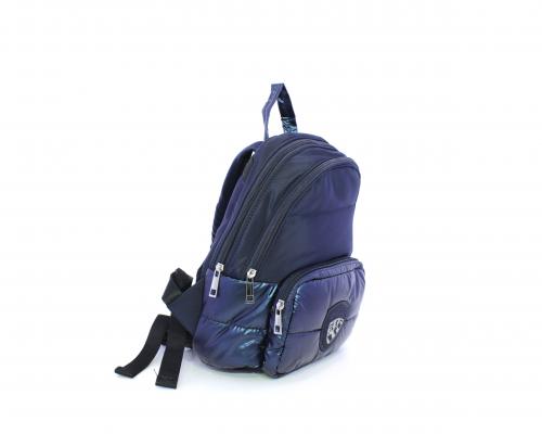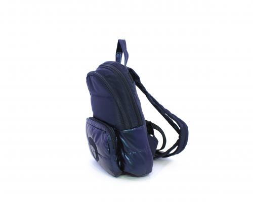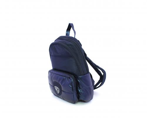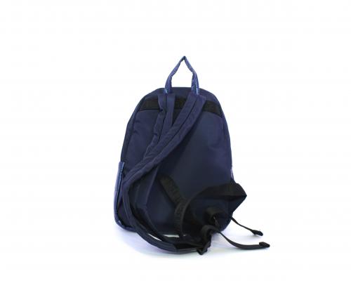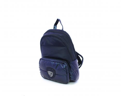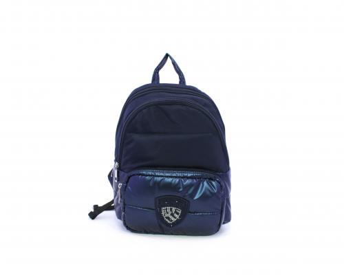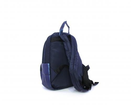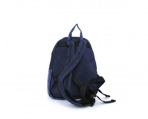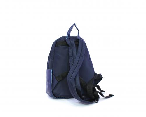 Zainetto in tessuto tecnico con tracolle regolabili in tessuto, taschino centrale chiuso con zip, logo centrale con brillantini, zainetto diviso in due scomparti separati entrambi chiusi con cerniera e all'interno di ogni scomparto ci sono due taschini uno aperto e uno chiuso con zip, fodera interna in tessuto.