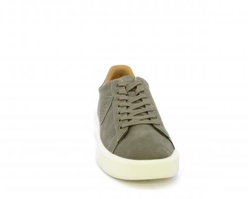 Sneakers con lacci, fondo in gomma, tomaia in pelle, sottopiede in pelle, fodera interna in pelle e tessuto, fusbet anatomico estraibile.