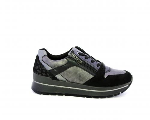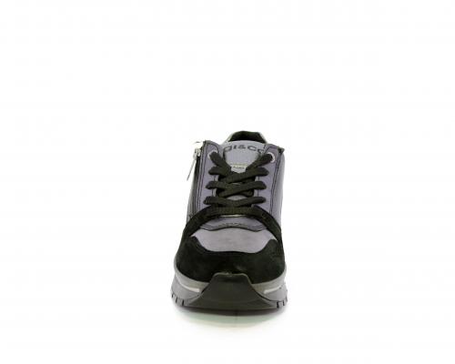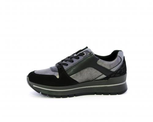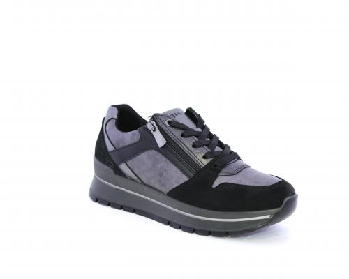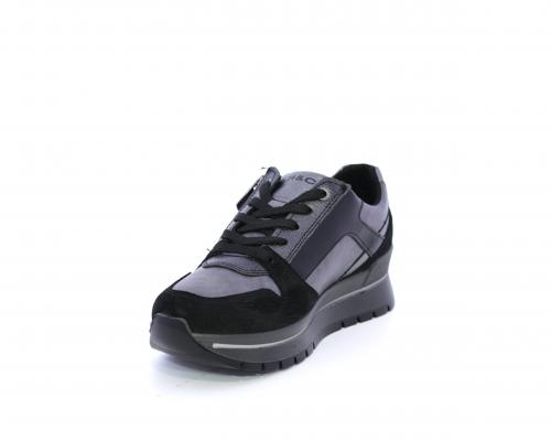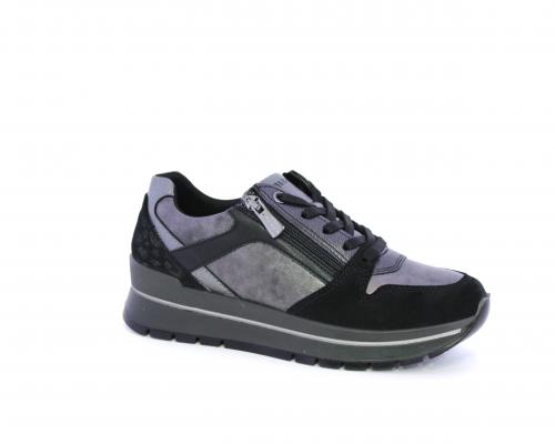 Sneakers con lacci e chiusura laterale per facilitare la calzata, platform in gomma, tomaia in pelle con inserti in suede, sottopiede in pelle, fodera interna in tessuto, fusbet estraibile con memory foam.