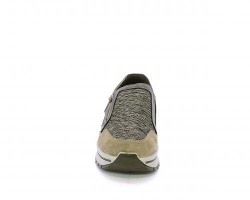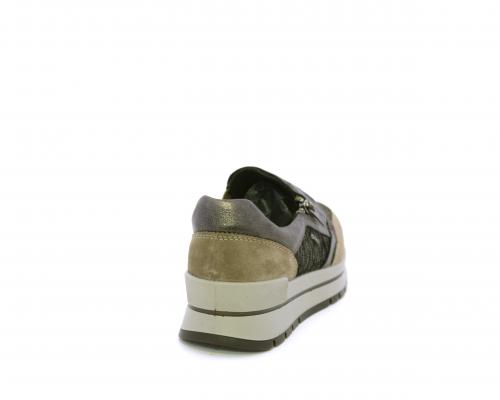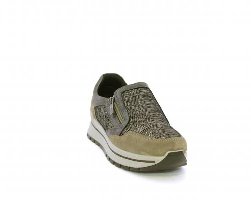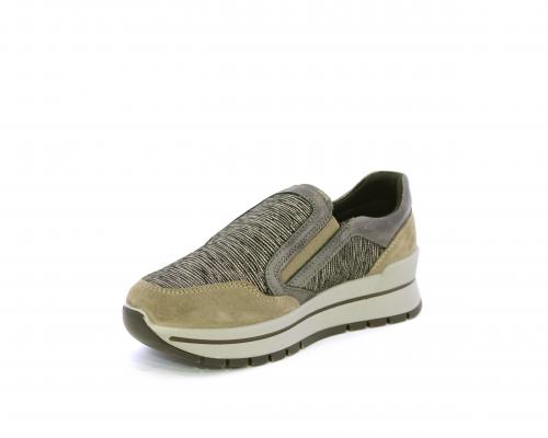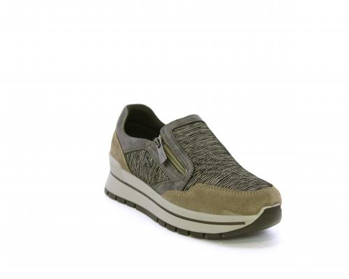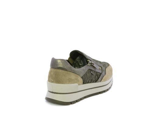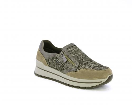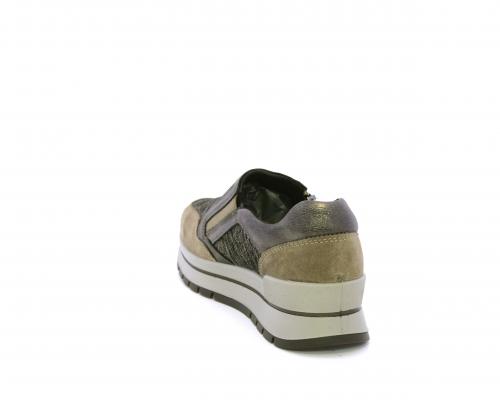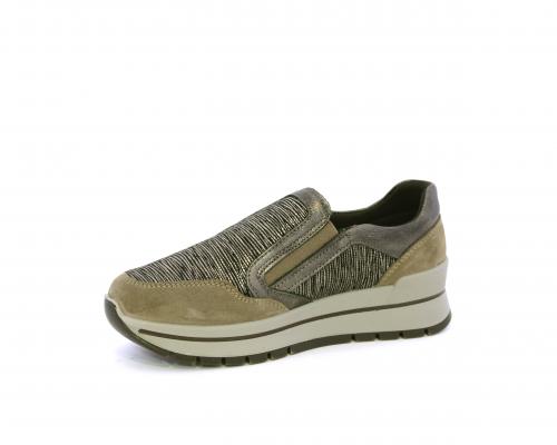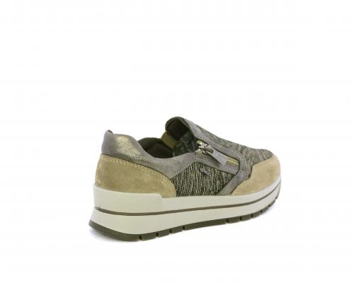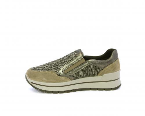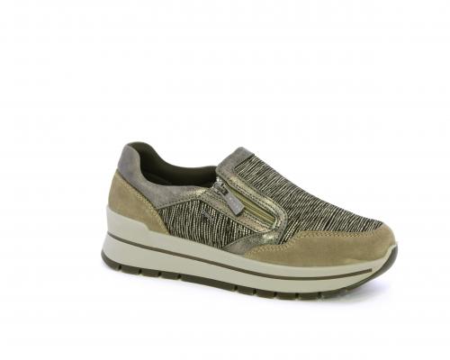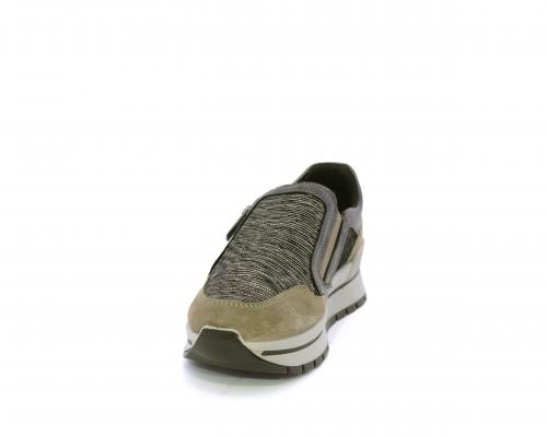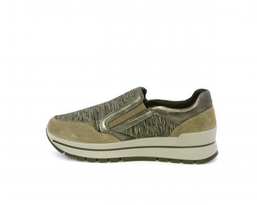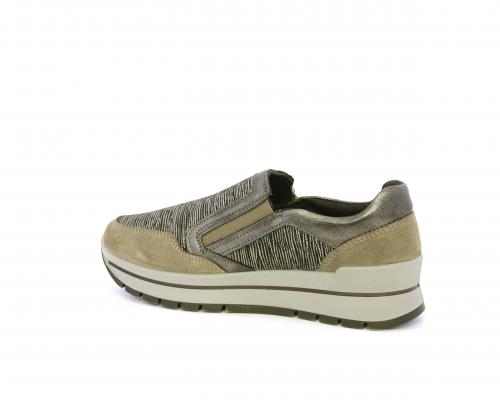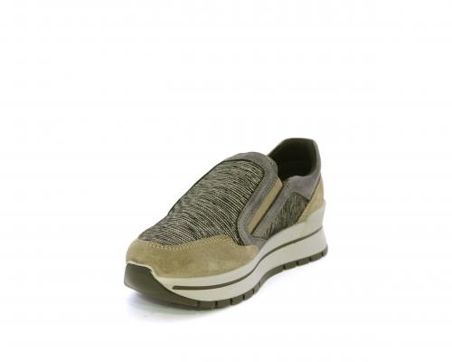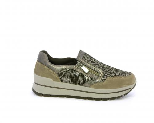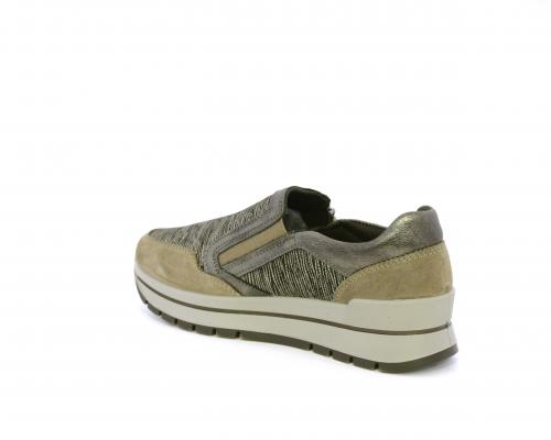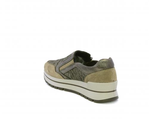 Sneakers con chiusura laterale ed elastico, platform in gomma, tomaia in camoscio e inserti in tessuto satinato, sottopiede in pelle, fodera interna in tessuto, fusbet estraibile con memory foam.
