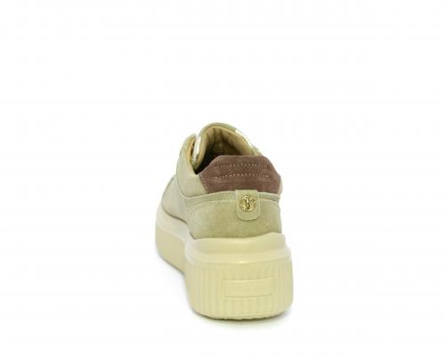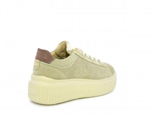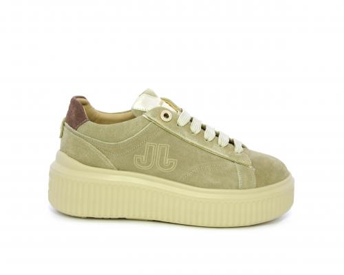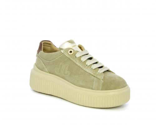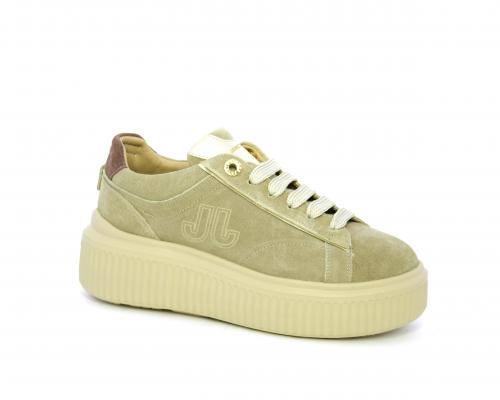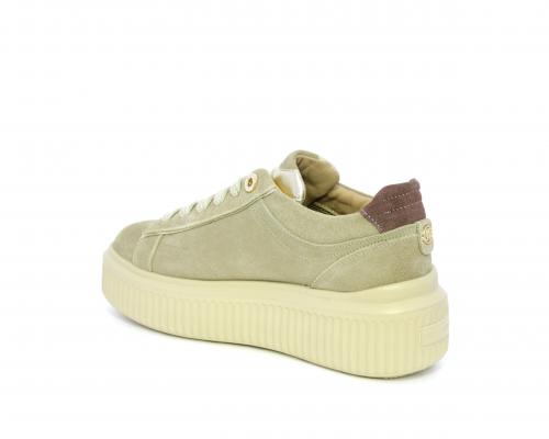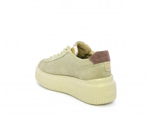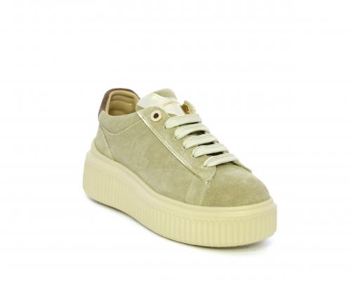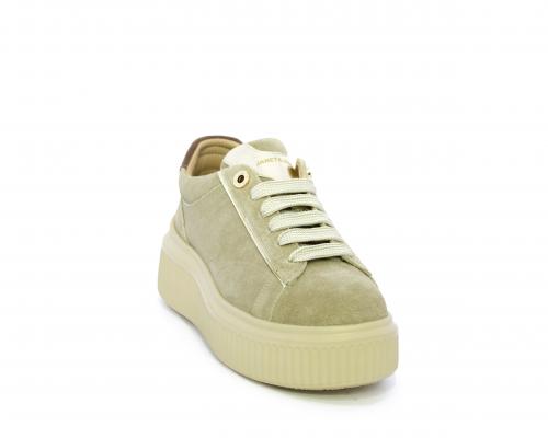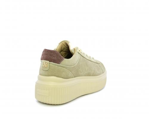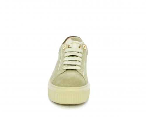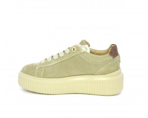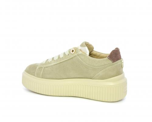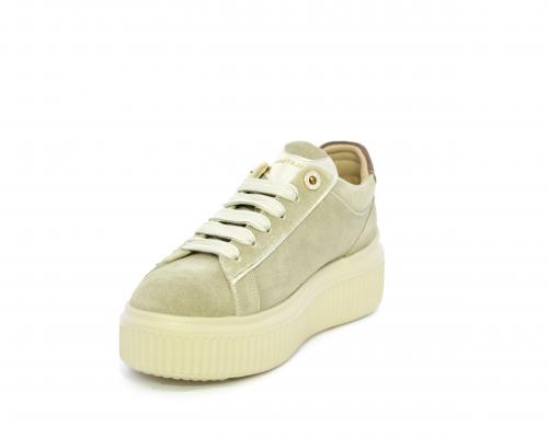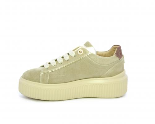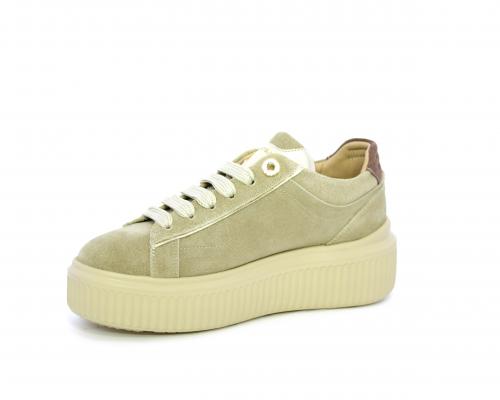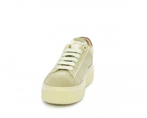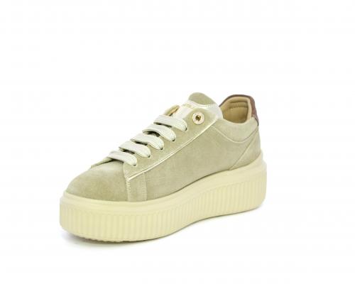 Sneakers con doppio laccio di ricambio, platfoam in gomma, tomaia in camoscio con rifiniture in pelle color platino, sottopiede in pelle, fodera interna in pelle e tessuto, fusbet estraibile con memory.