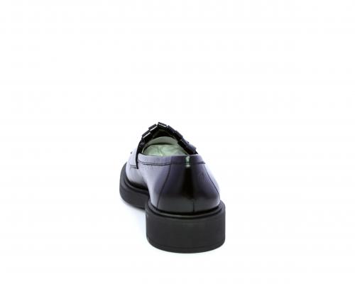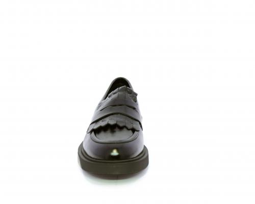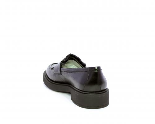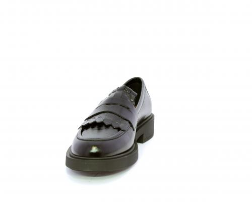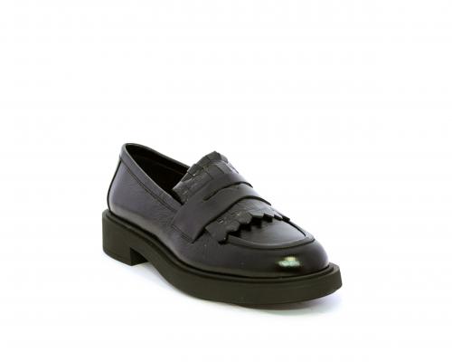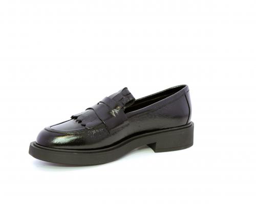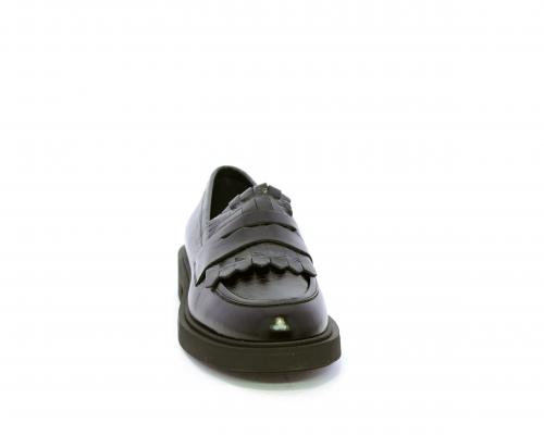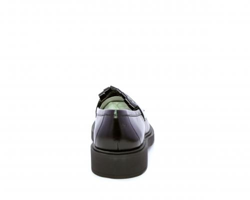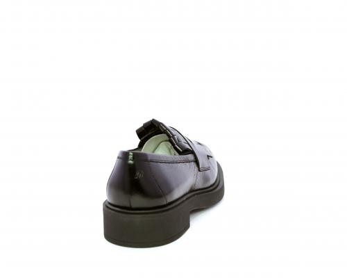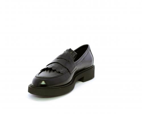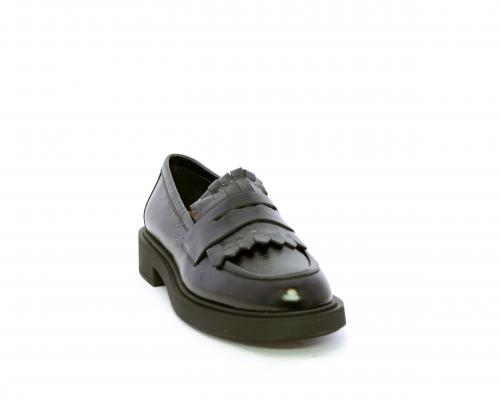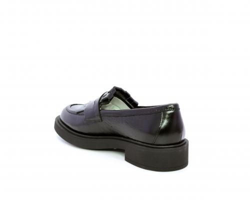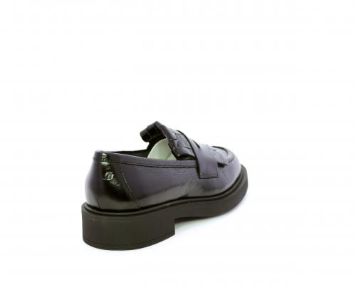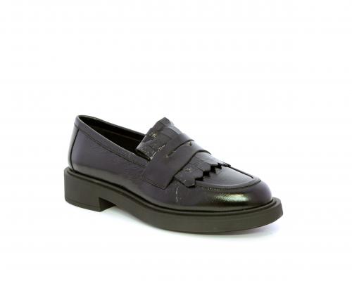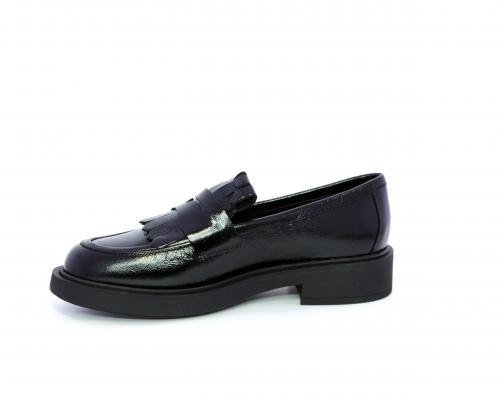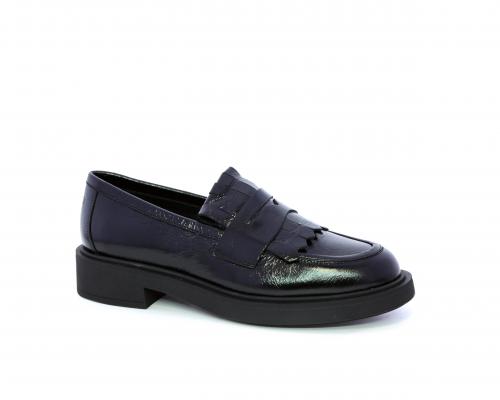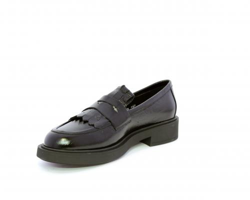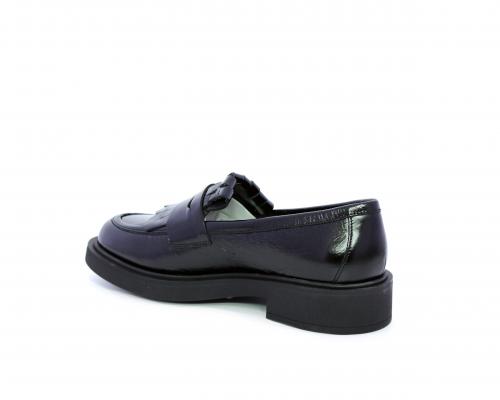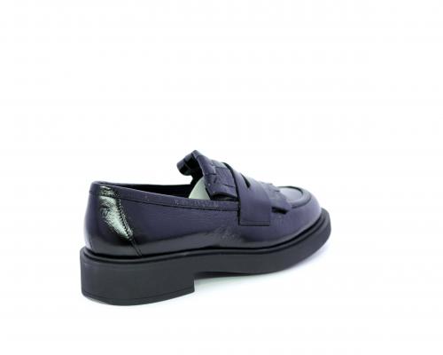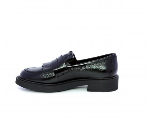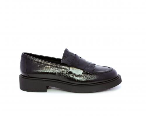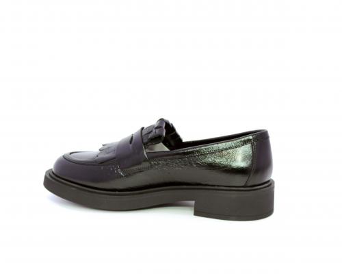 Mocassino con fondo e tacco in gomma, tomaia in vernice, sottopiede e fodera interna in pelle, fusbet anatomico con memory.