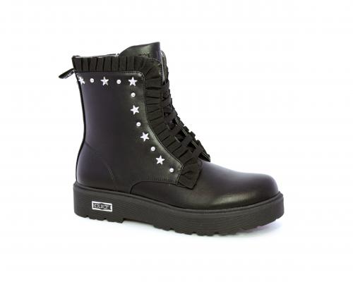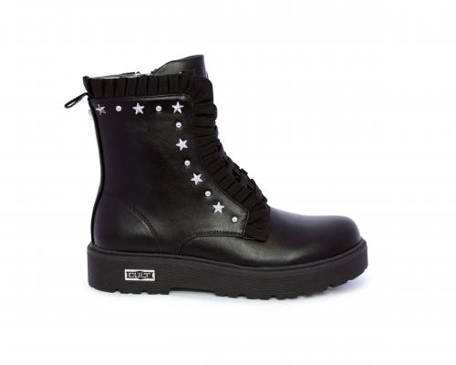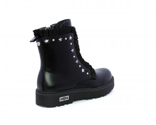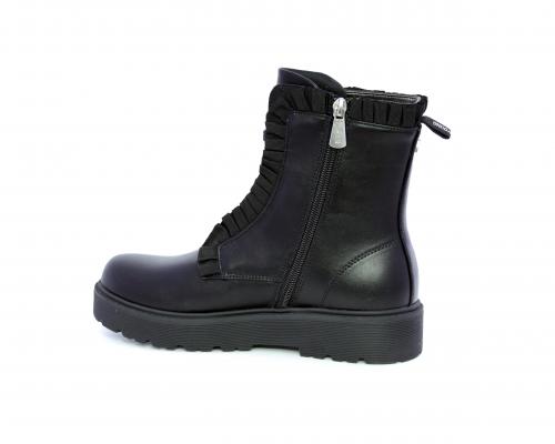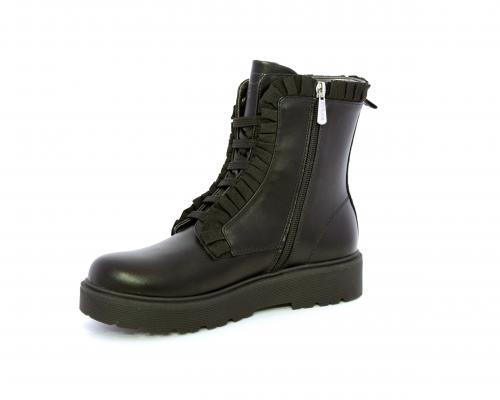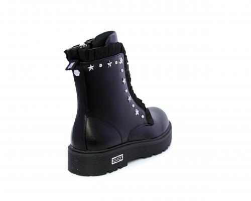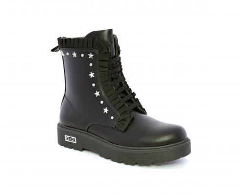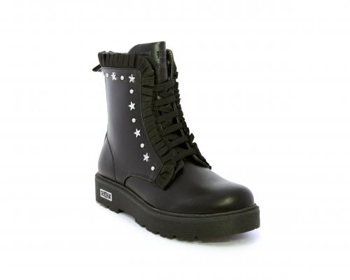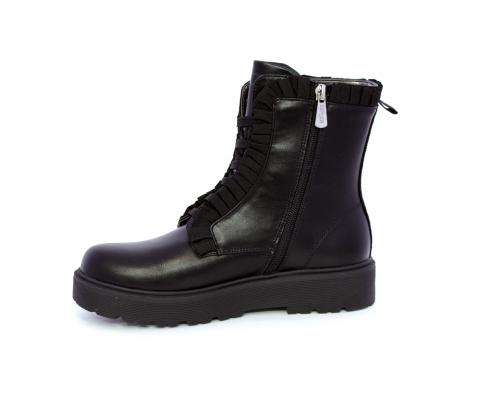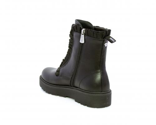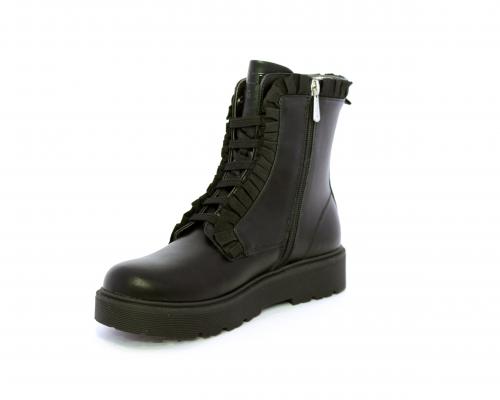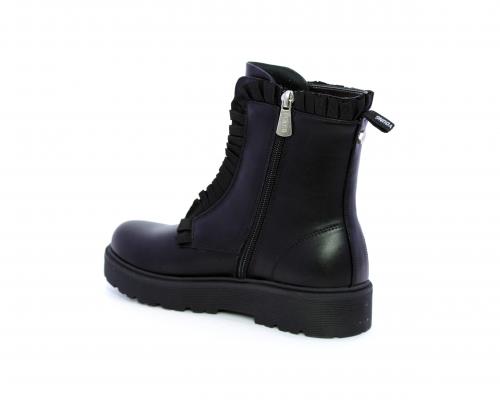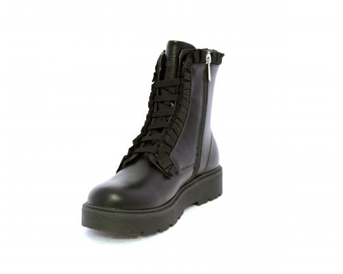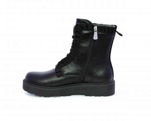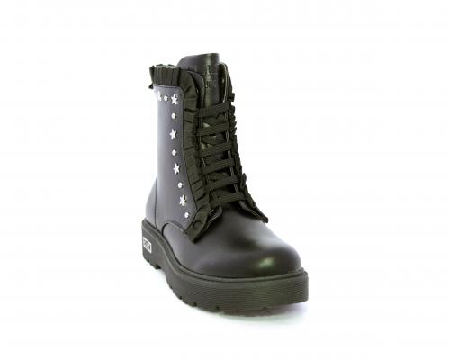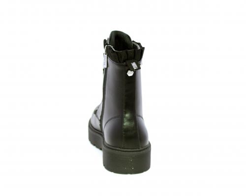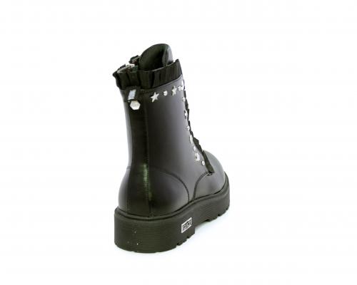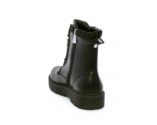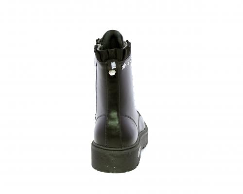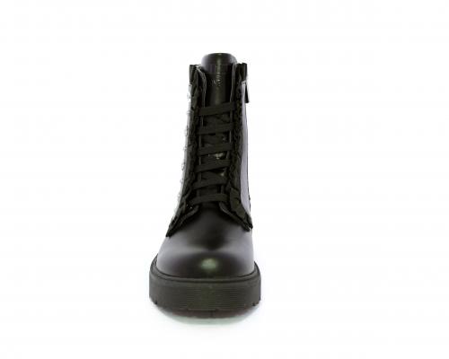 Anfibio con lacci e chiusura laterale, fondo in gomma con medaglia in acciaio con logo, tomaia in pelle con accessori in acciaio, sottopiede in pelle, fodera interna in tessuto, fusbet anatomico.