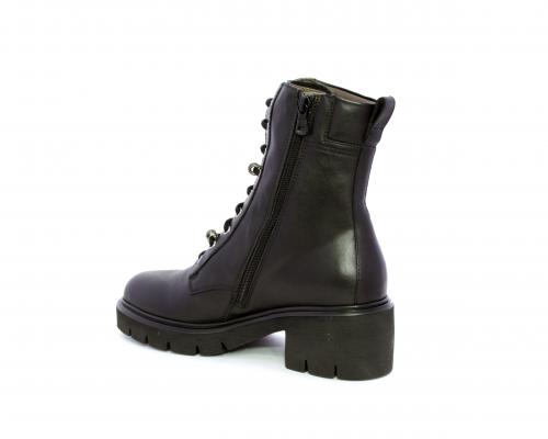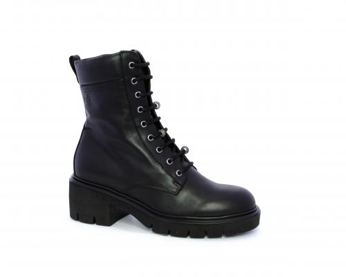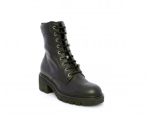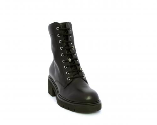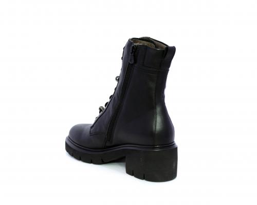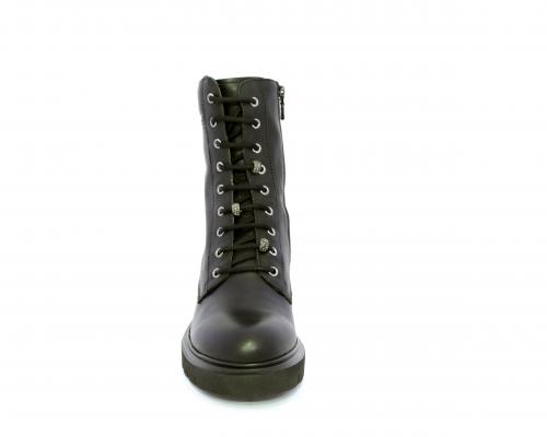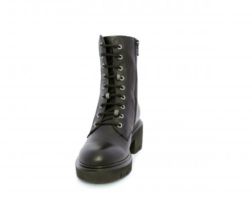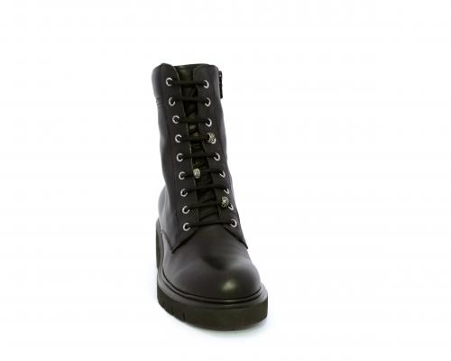 Tronchetto con lacci e chiusura laterale, zeppa e plateaux in gomma, tomaia in pelle con accessori removibili sui lacci, sottopiede in tessuto, fodera interna in pelle,fusbet estraibile in poliuretano Dry-Go, con doppia capacità sia di assorbire il sudore sia di asciugarsi rapidamente, inoltre ha anche la funzione MEMORY che si modella al piede garantendo confort e benessere.