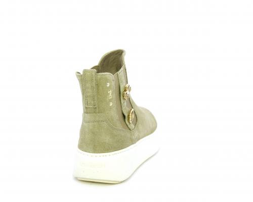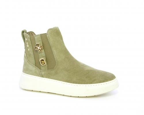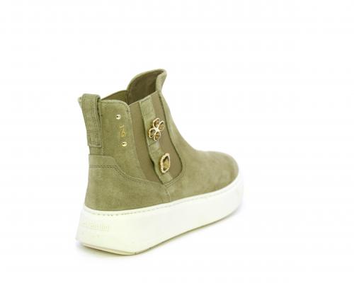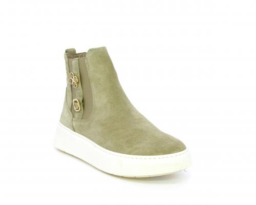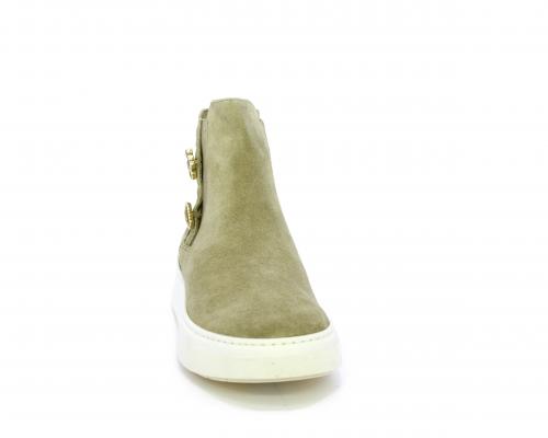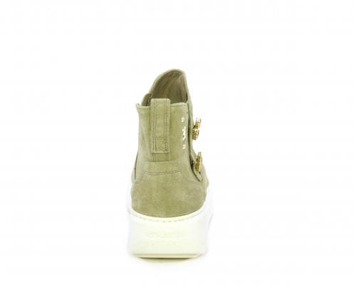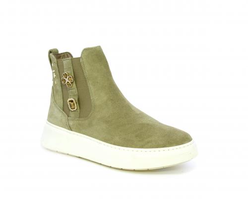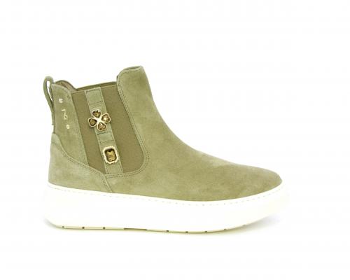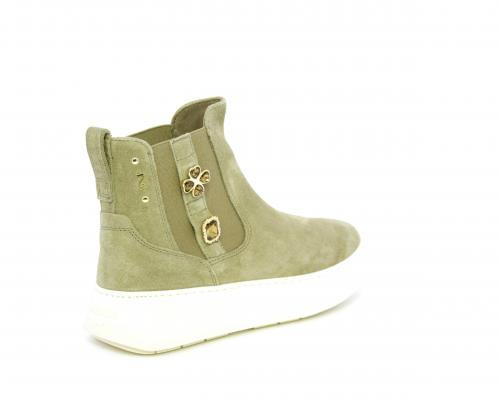 Tronchetto con doppio elastico, platform in gomma, tomaia in camoscio con accesori laterali, sottopiede in tessuto, fodera interna in pelle, fusbet estraibile in poliuretano Dry-Go, con doppia capacità di assorbire il sudore e asciugarsi rapidamente, inoltre ha anche la funzione MEMORY che si modella al piede garantendo confort e benessere.