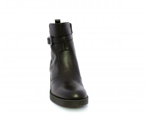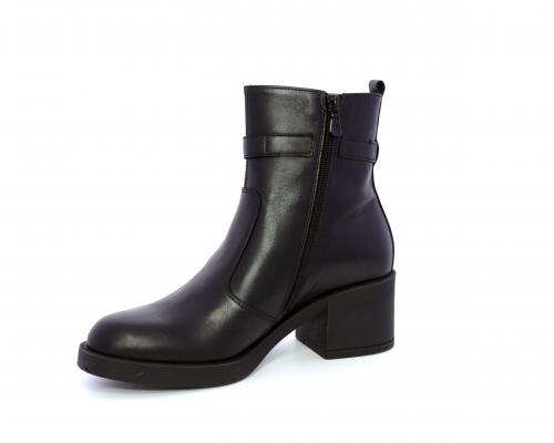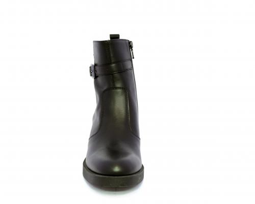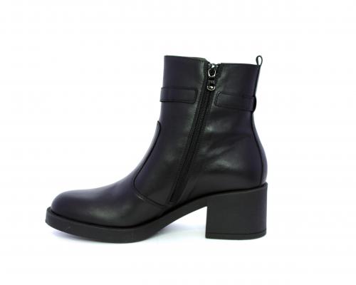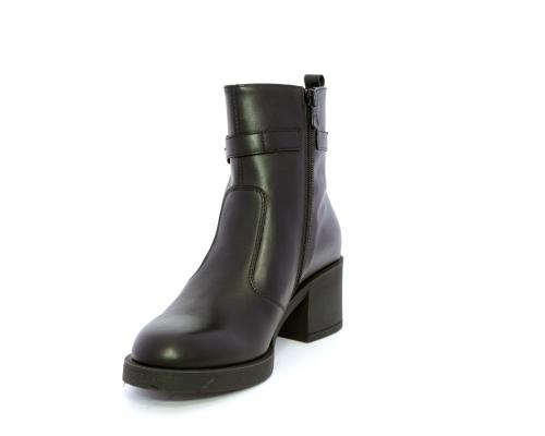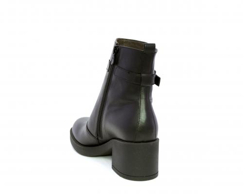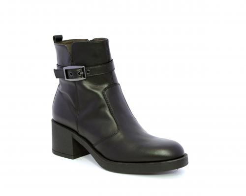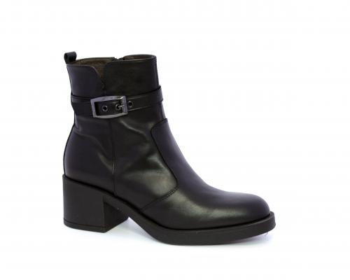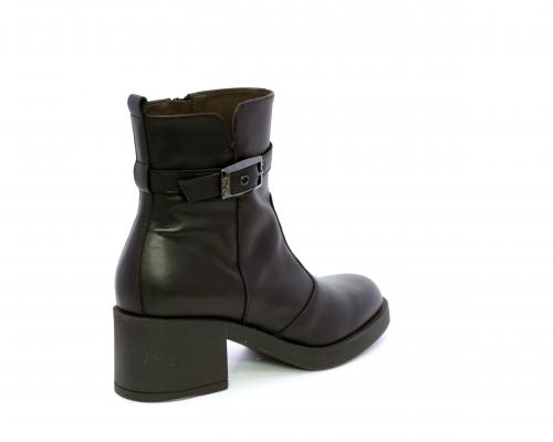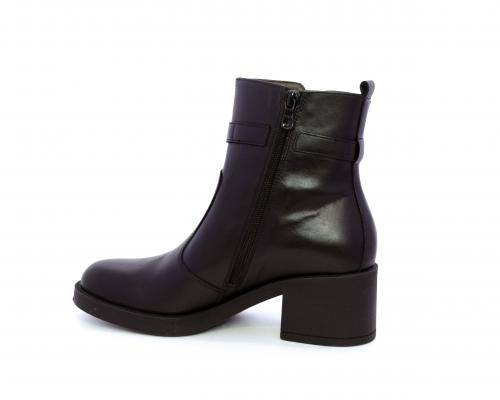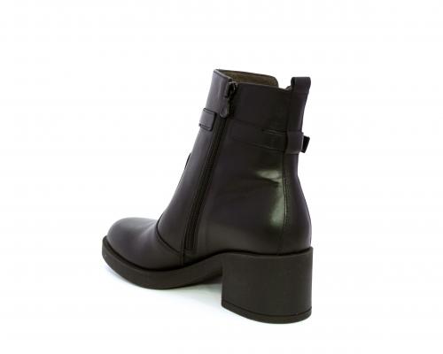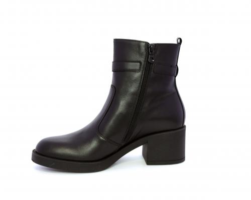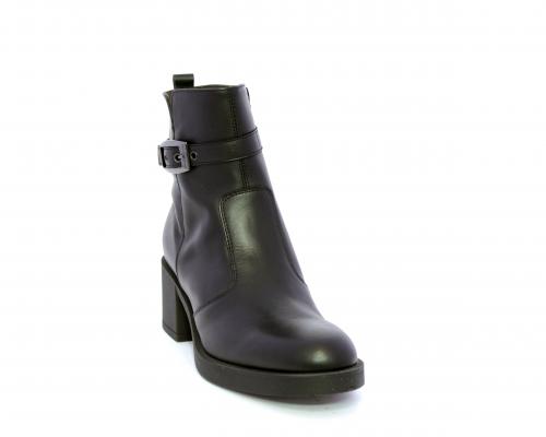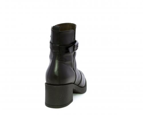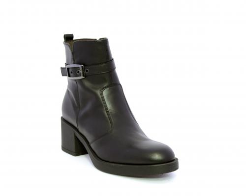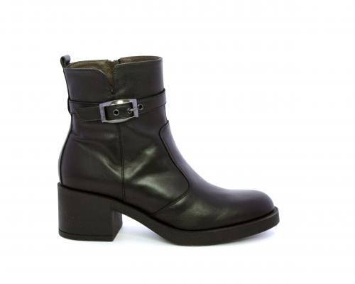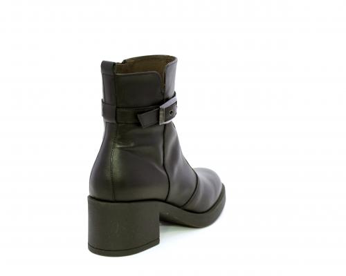 Tronchetto con chiusura laterale, tacco e fondo in gomma, tomaia in pelle con fibbia laterale regolabile, sottopiede e fodera interna in pelle, fusbet anatomico con memory.
