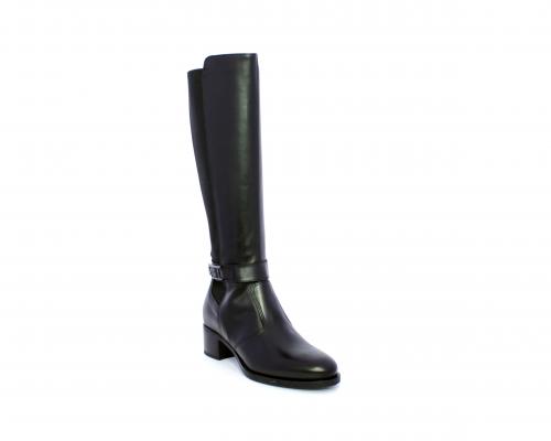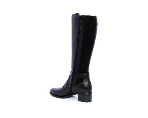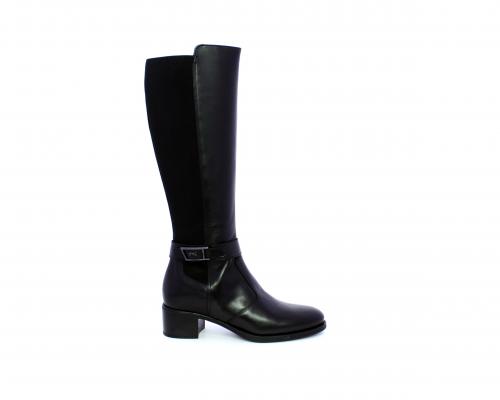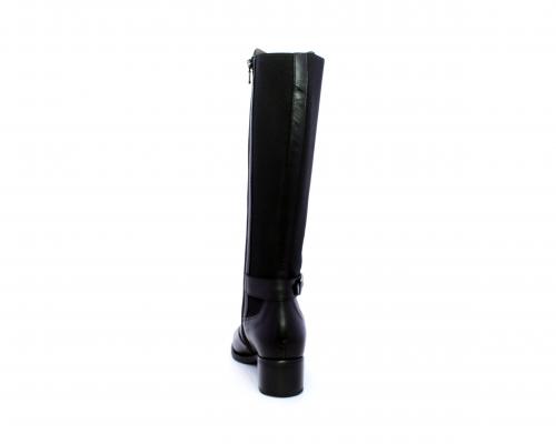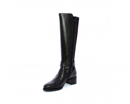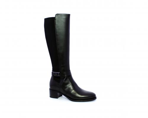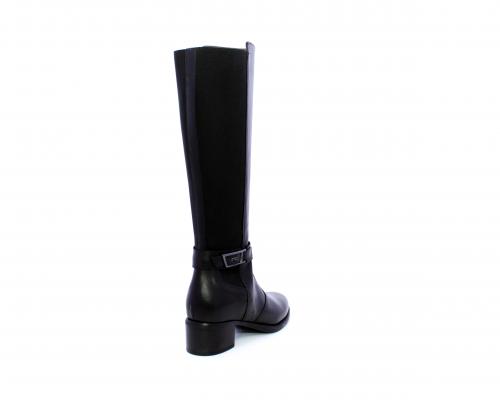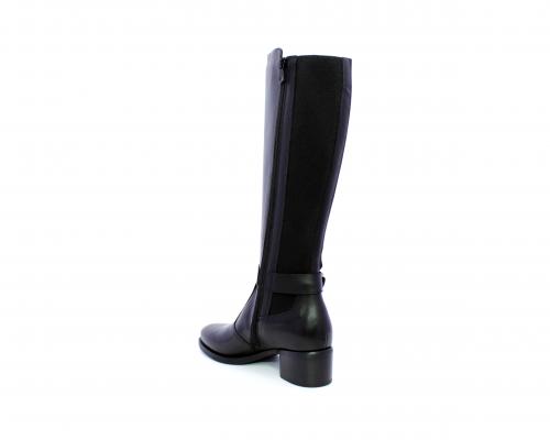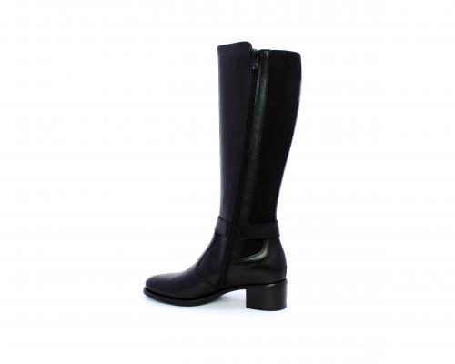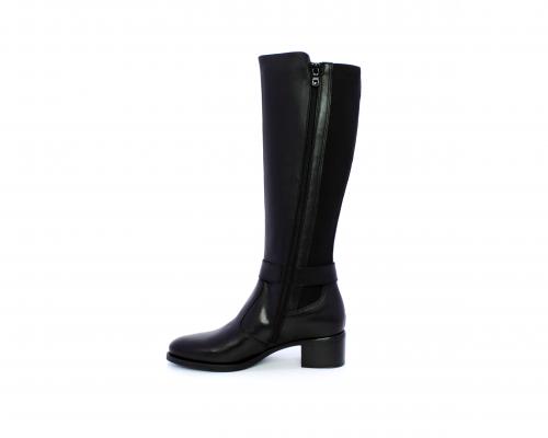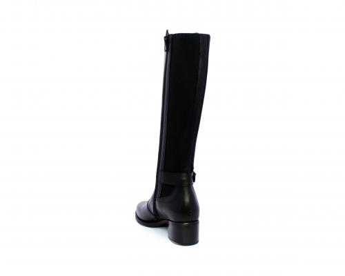Stivale lungo con fondo in gomma e tacco effetto legno, tomaia in pelle, chiusura laterale con cerniera e parte elasticizzata dietro al polpaccio, sottopiede e fodera interna in pelle, fusbet estraibile con sistema DryGo, in grado di assorbire il sudore e asciugarsi rapidamente quando si toglie la calzatura, in più è dotato anche di sistema in memory per donare benessere e confort.