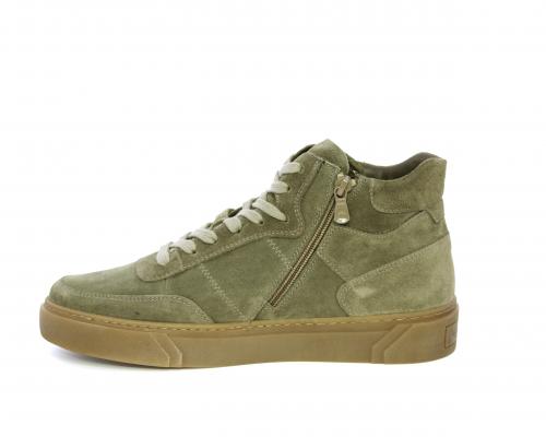 Sneakers con lacci e chiusura laterale, tomaia in camoscio, sottopiede in tessuto, fodera interna in pelle, fusbet estraibile in poliuretano con sistema Dry-Go, che oltre alla capacità di assorbire il sudore si asciuga rapidamente quando si toglie la scarpa, offre anche l'innovativa funzione memory che dona confort e benessere.