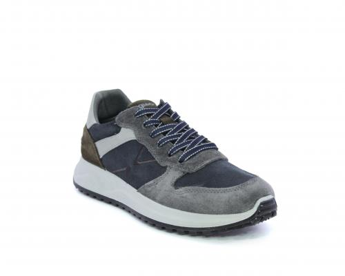 Sneakers con lacci, fondo in gomma, tomaia in camoscio, sottopiede in pelle, fodera interna in tessuto, fusbet anatomico estraibile.