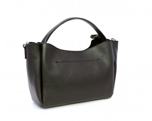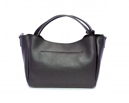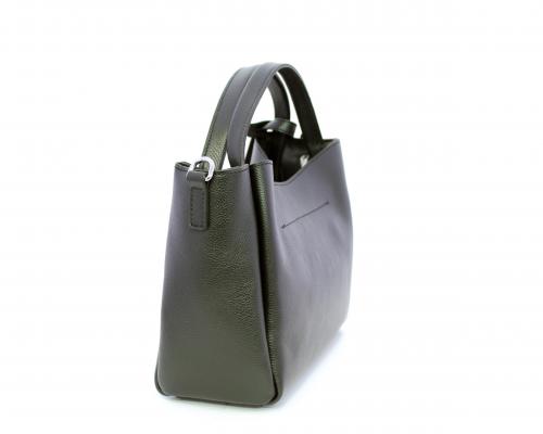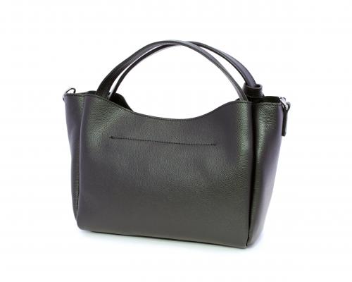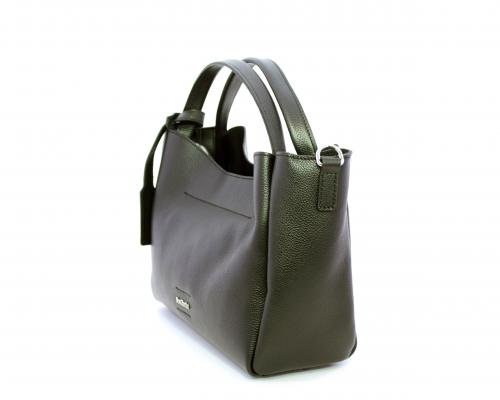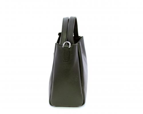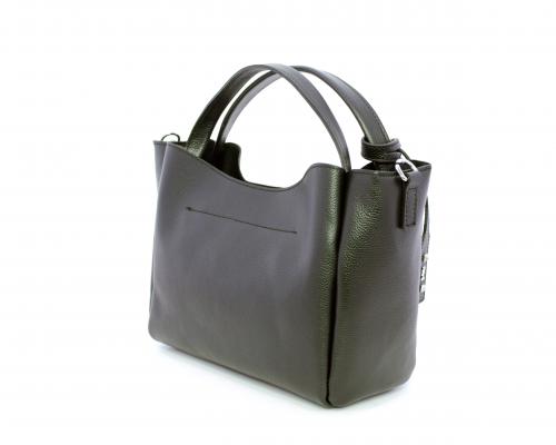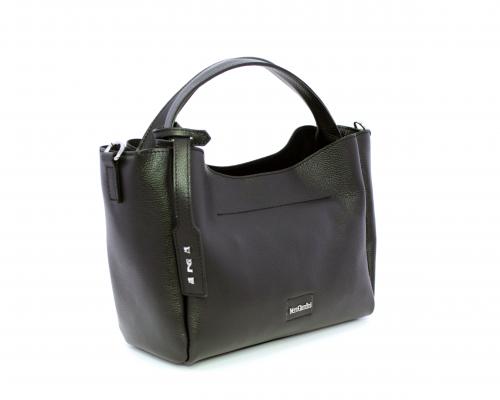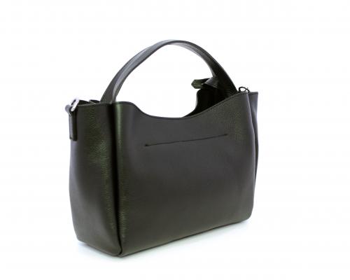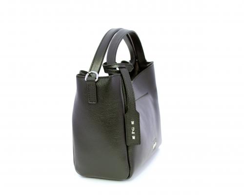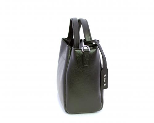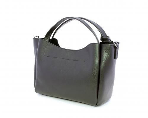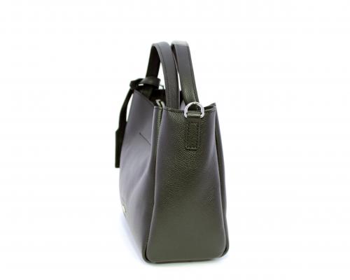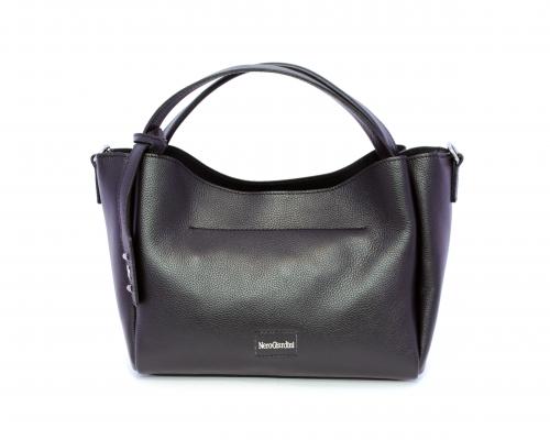 Borsa in pelle, forma rettangolare, doppio manico corto in pelle e possibilità di aggiungere la tracolla regolabile in pelle, rifiniture in acciaio, chiusura generale della borsa con cerniera, all'interno pochette in pelle che può essere staccata.