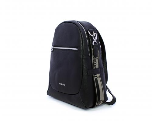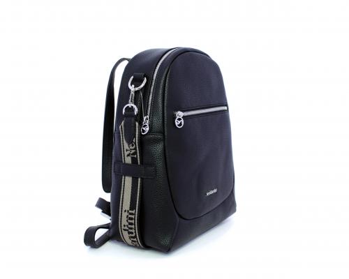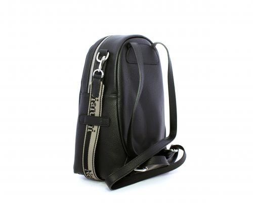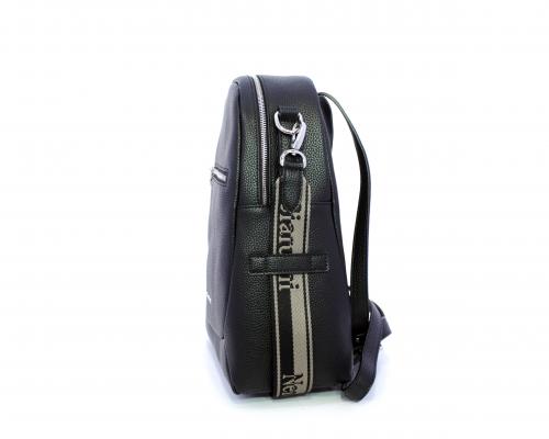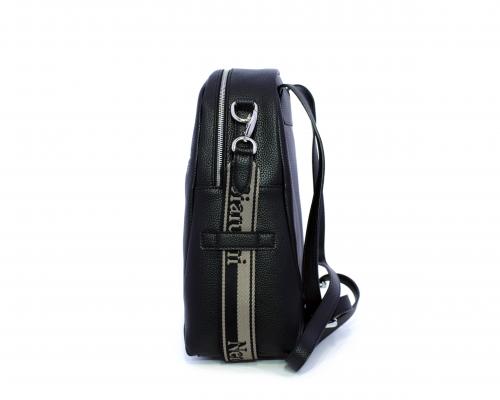 Zaino in pelle, bretelle in pelle regolabile, intorno alla zaino tracolla in tessuto removibile che può essere usata per mettere lo zaino monospalla, rifiniture in acciaio, chiusura generale con cerniera e taschino con cerniera nella parte anteriore, fodera interna in tessuto, all'interno doppio taschino uno aperto e uno chiuso.