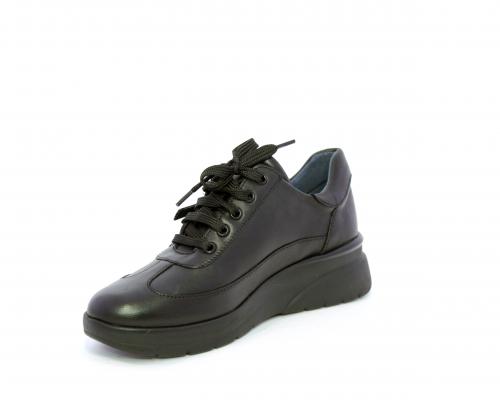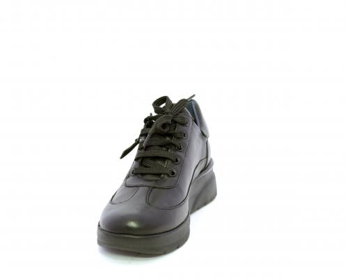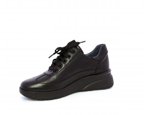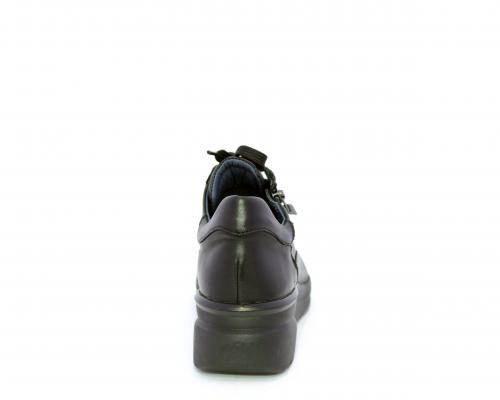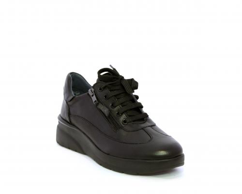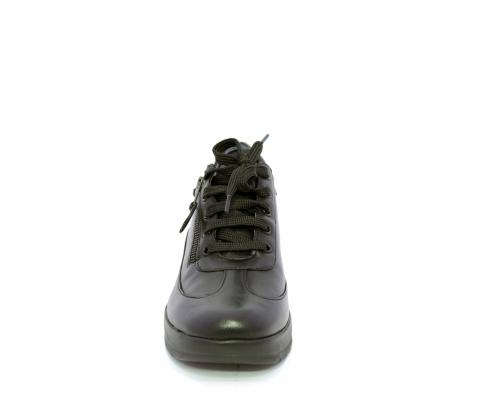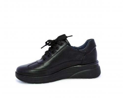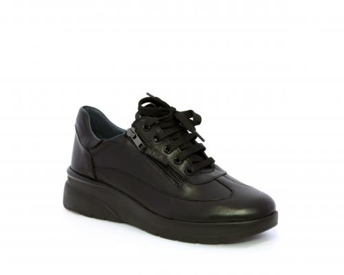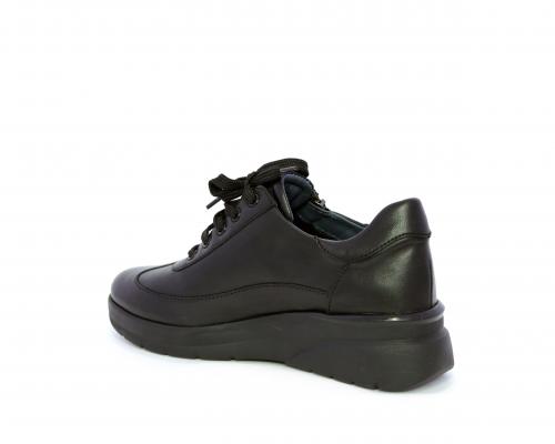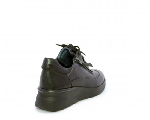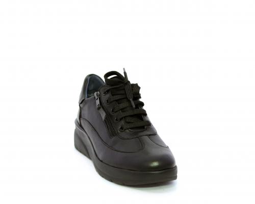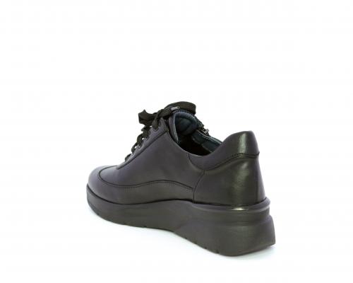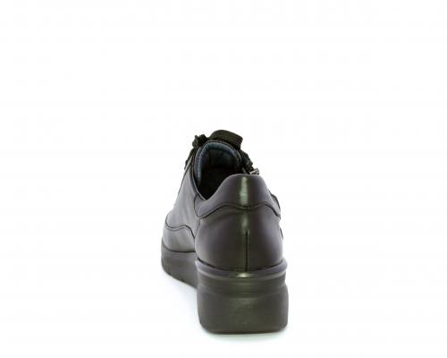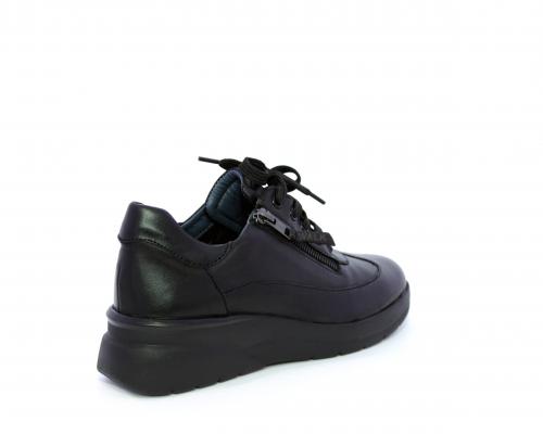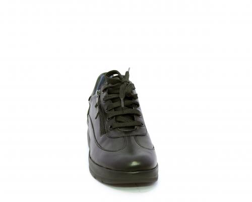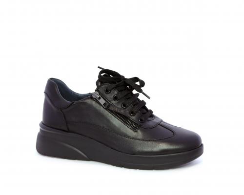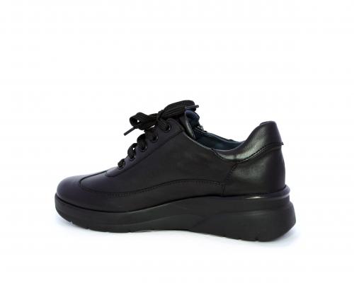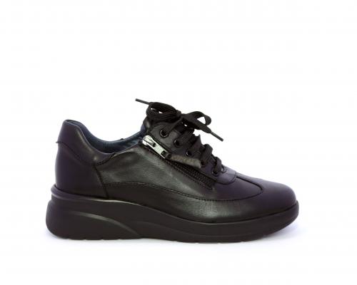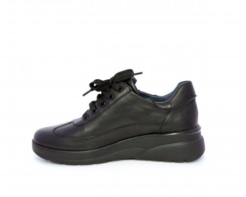 Sneakers con lacci e chiusura laterale per facilitare la calzata, tomaia in pelle, sottopiede e fodera interna in tessuto, fusbet estraibile con memory.